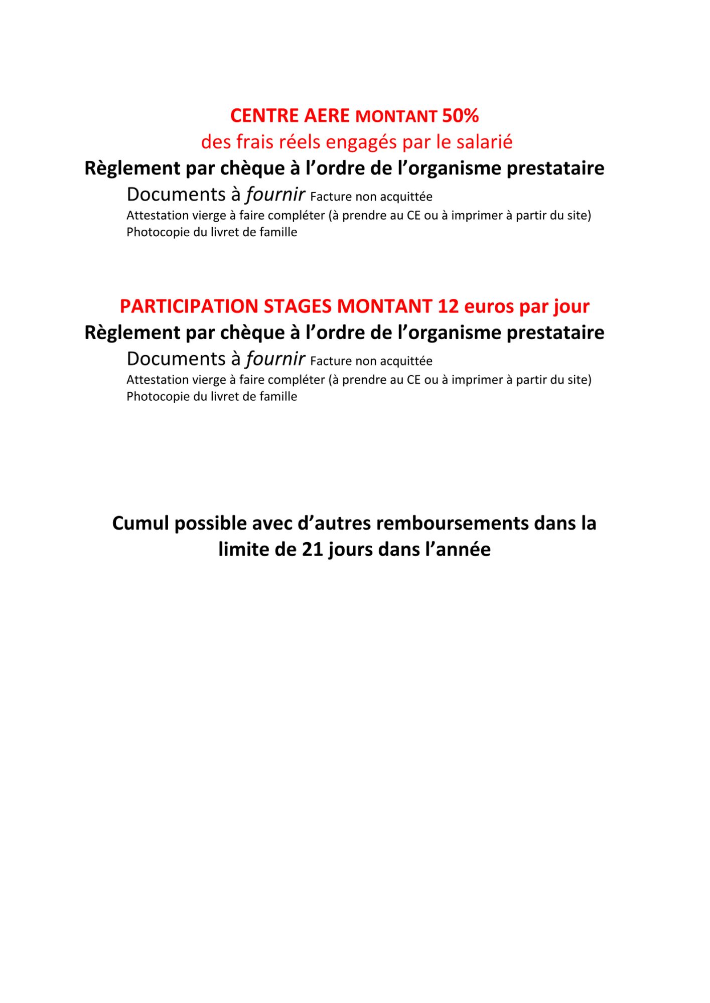 Centre aéré (21 jours par année civile // moitié de facture)