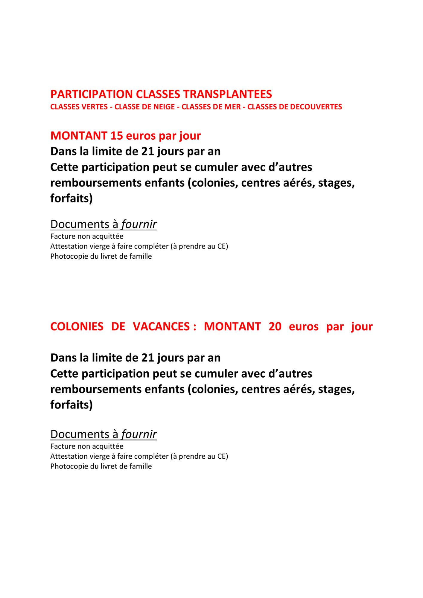Colonies (21 jours par année civile // 20€ par jour)