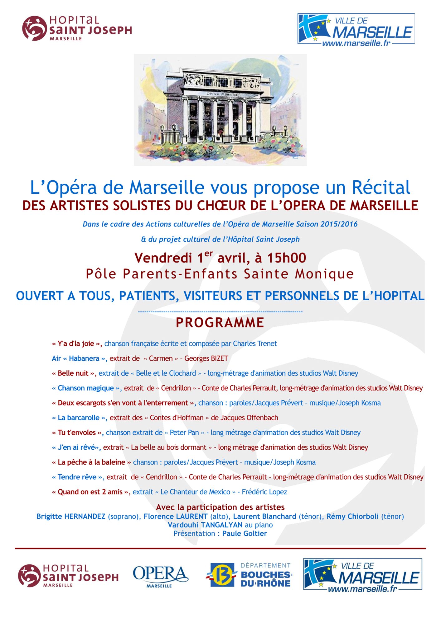 Récital des Solistes du Chœur de l'Opéra de Marseille au Pôle Parents-Enfants Sainte Monique - 21 avril 2016 - 19h