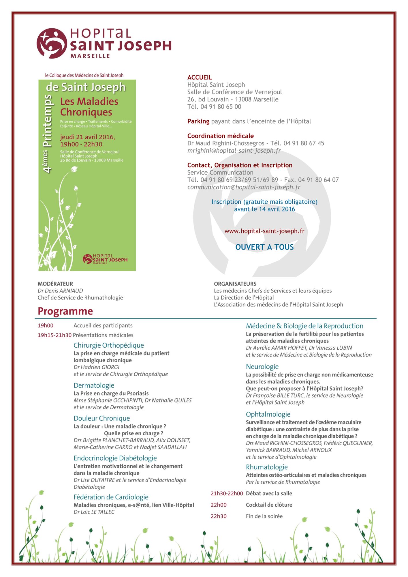 4èmes Printemps de Saint Joseph : Les Maladies Chroniques - 24 septembre 2016 - 8h00