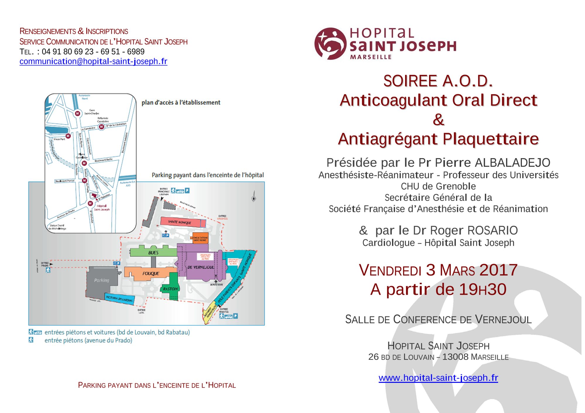 Soirée A.O.D. - Anticoagulant Oral Direct - et Antiagrégant Plaquettaire - Samedi 28 Janvier 2017, 8h30 – 13h00