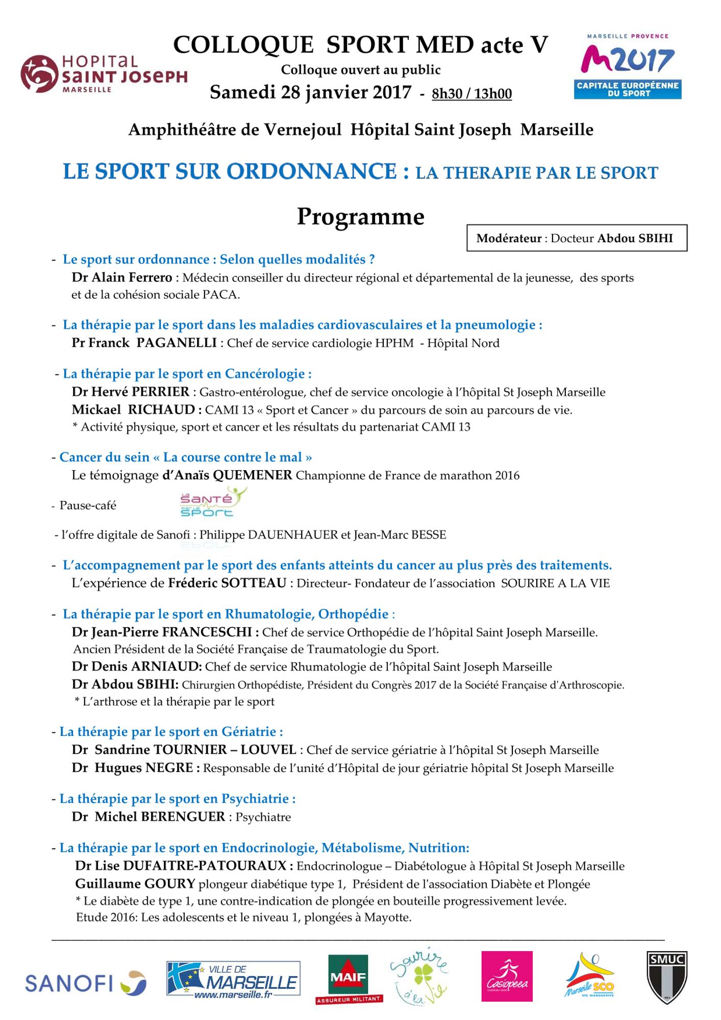 Inscription : www.sportmed.fr - Jeudi 27 avril 2017, à partir de 20h00