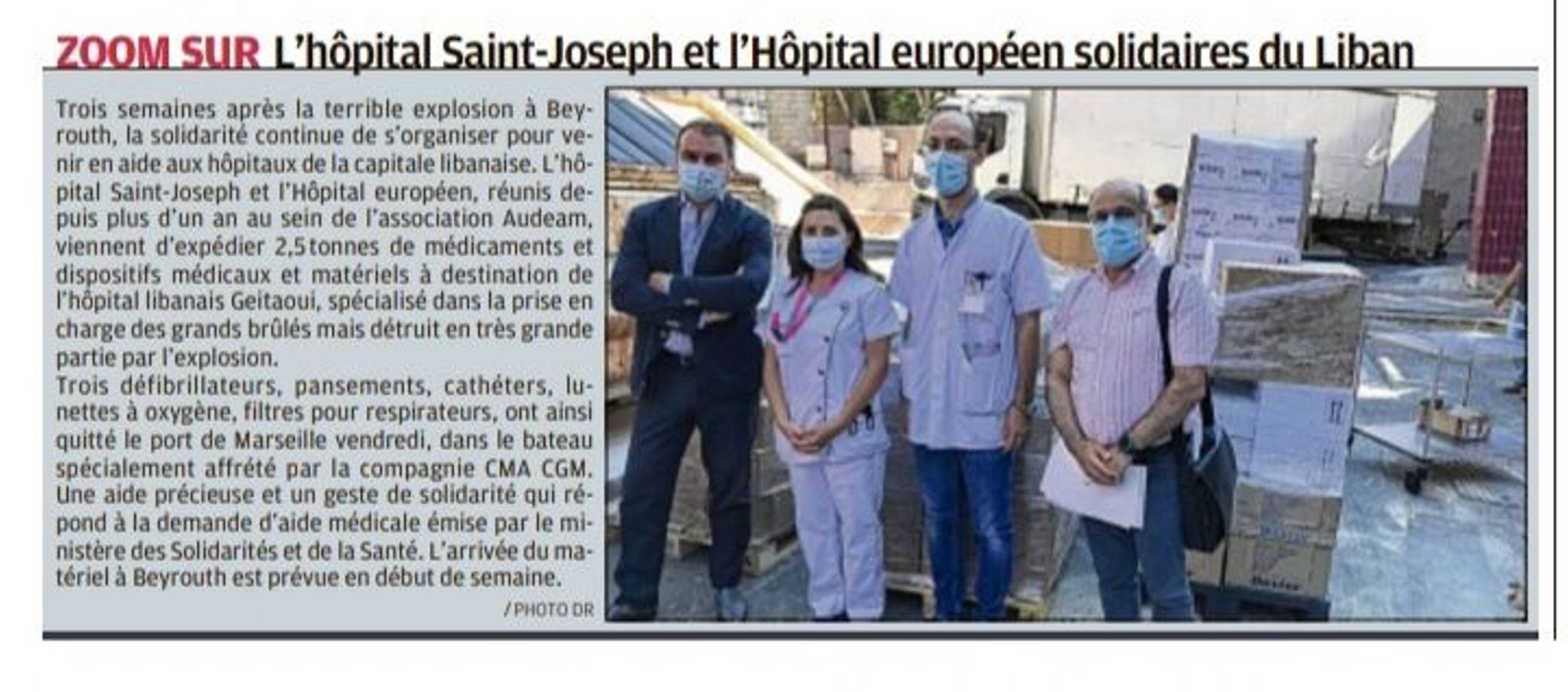 L'Hôpital Saint Joseph et l'Hôpital Européen solidaires du Liban La Provence, 23/08/2020 La Provence, 23/08/2020 : L'Hôpital Saint Joseph et l'Hôpital Européen solidaires du Liban (103.2 Ko)