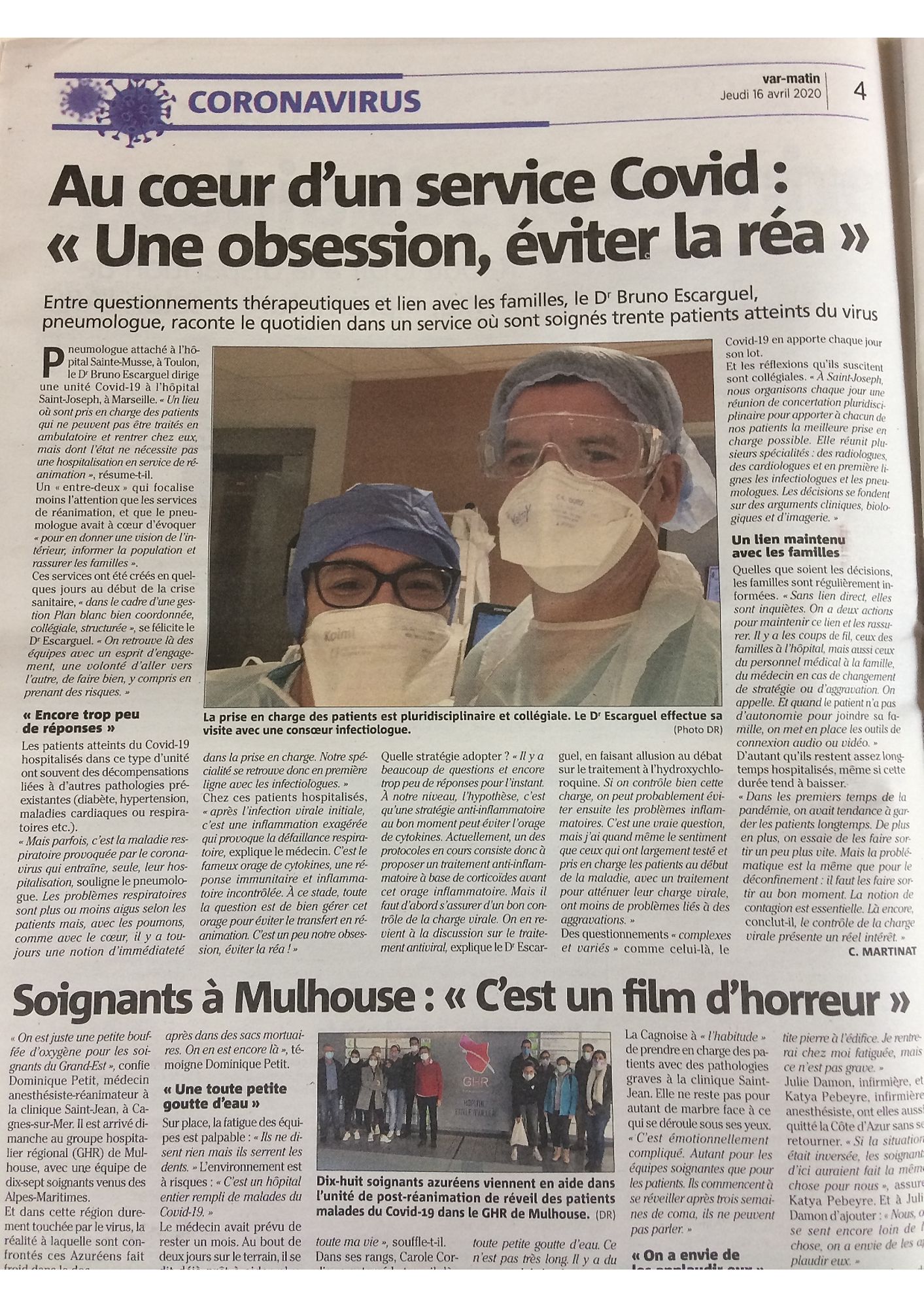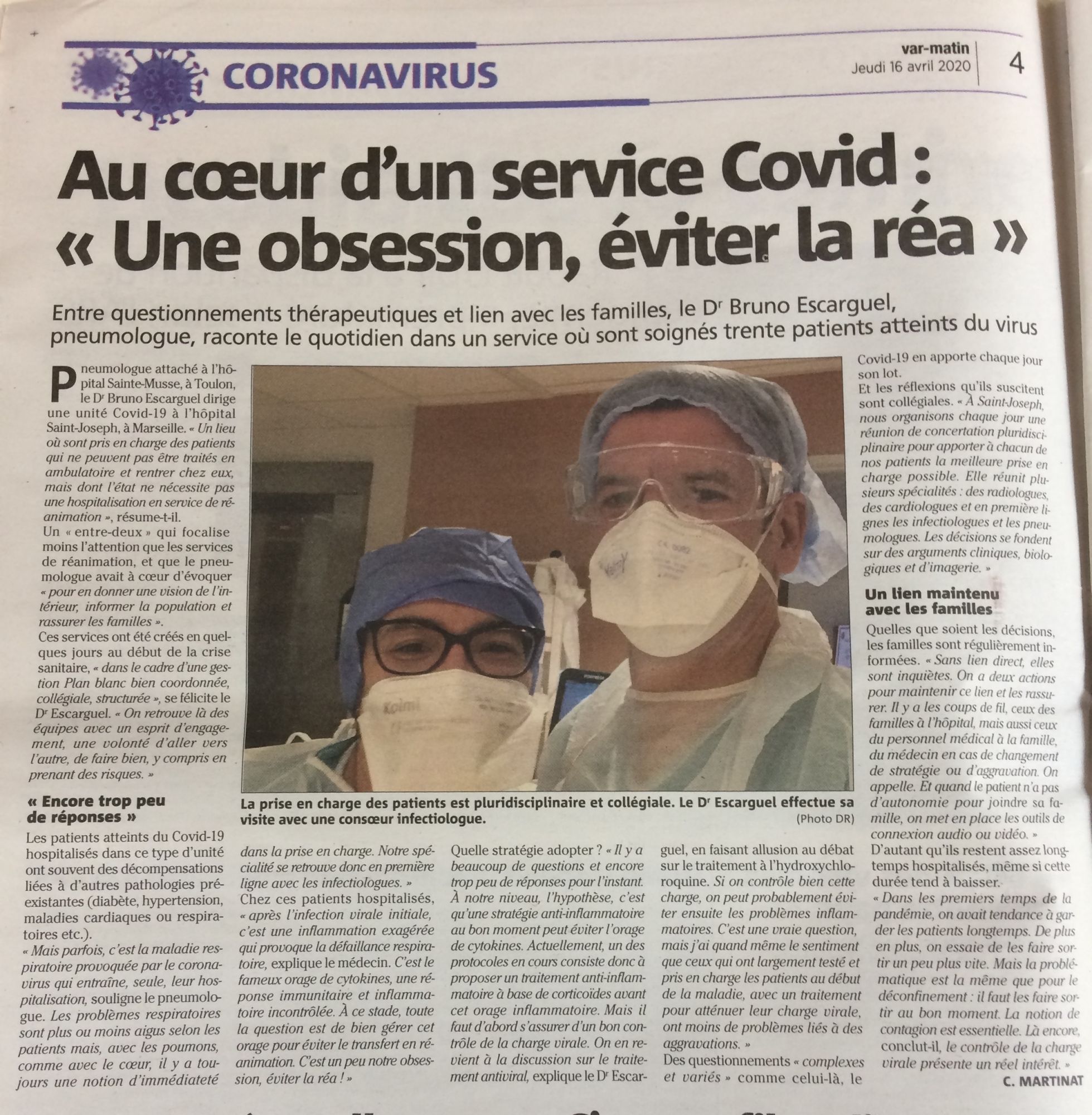 Au coeur d'un service Covid : "une obsession, éviter la réa" Var Matin, 16/04/2020 Var Matin, 16/04/2020 : Au coeur d'un service Covid : "une obsession, éviter la réa" (2.4 Mo)