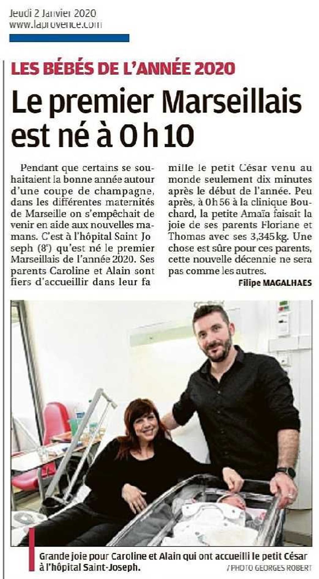 Le premier Marseillais est né à 0h10 -à la maternité de l'Hôpital Saint Joseph- La Provence, 02/01/2020 La Provence, 02/01/2020 : Le premier Marseillais est né à 0h10 (491.6 Ko)