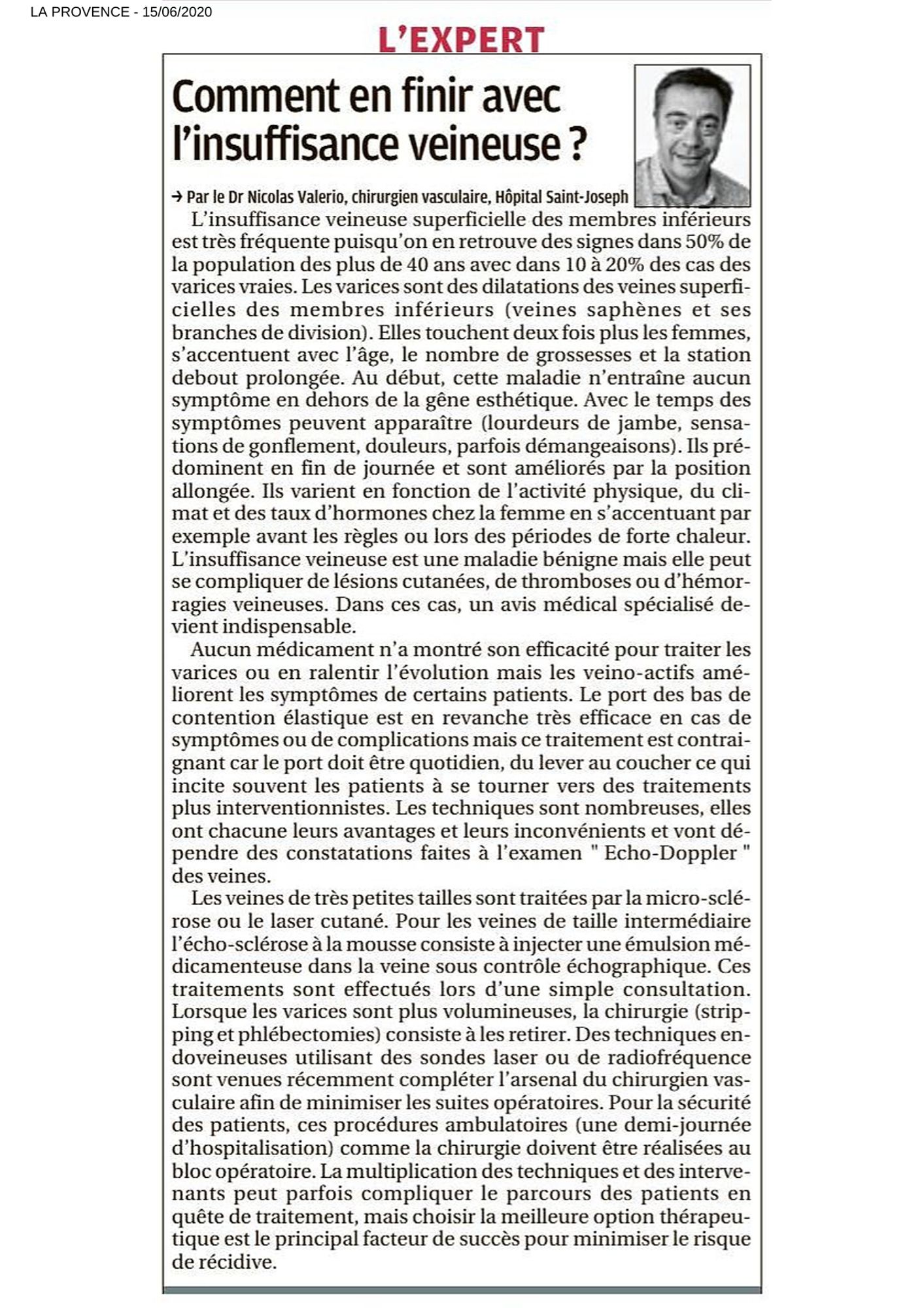 Comment en finir avec l'insuffisance veineuse? La Provence, 15/06/2020 La Provence, 15/06/2020 : Comment en finir avec l'insuffisance veineuse? (765.4 Ko)
