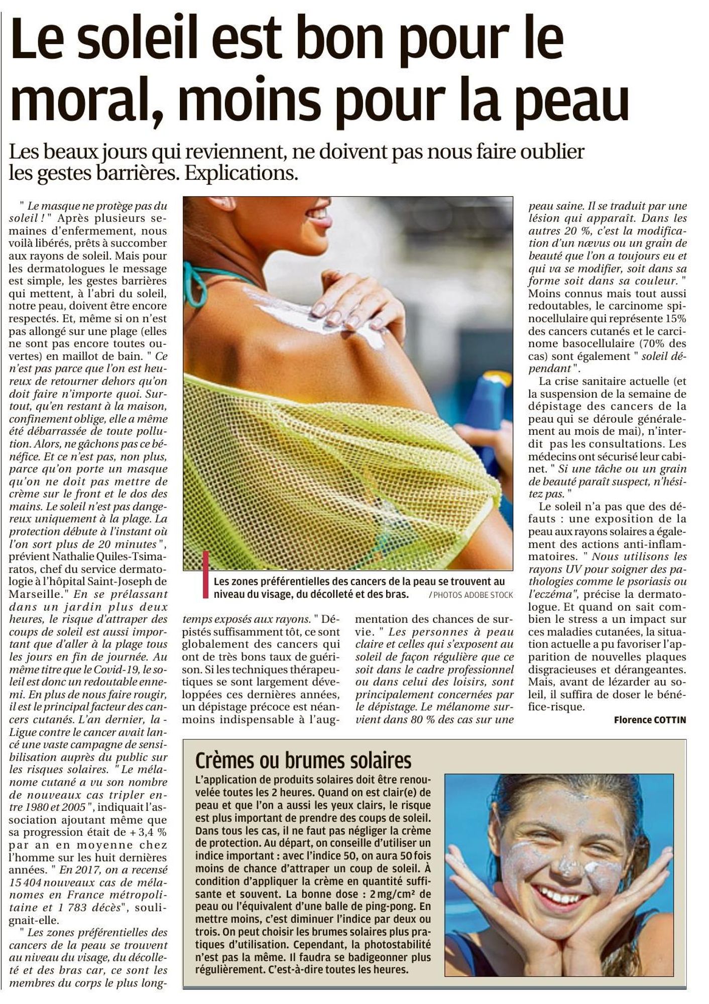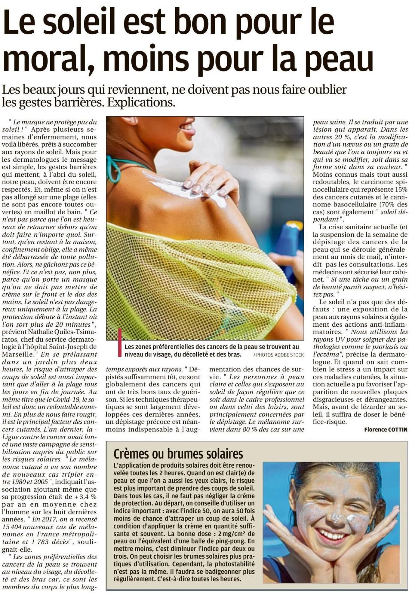 Le soleil est bon pour le moral, moins pour la peau La Provence, 25/05/2020 La Provence, 25/05/2020 : Le soleil est bon pour le moral, moins pour la peau (495.2 Ko)