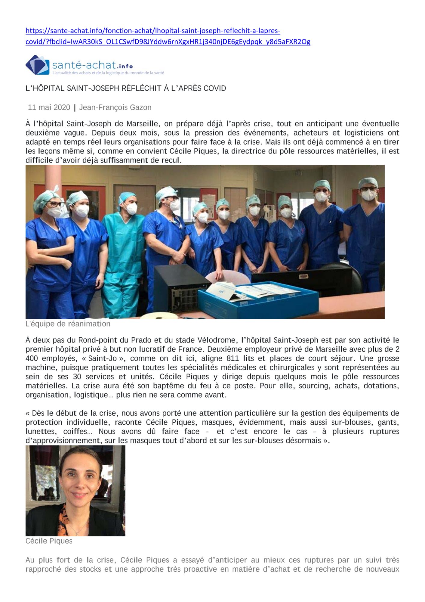 L'Hôpital Saint Joseph réfléchit à l'après Covid Santé Achat Info, 11/05/2020 Santé Achat Info, 11/05/2020 : L'Hôpital Saint Joseph réfléchit à l'après Covid (135.4 Ko)