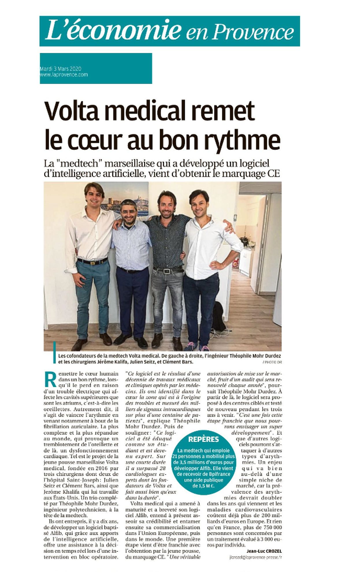 Volta Medical remet le coeur au bon rythme La Provence, 03/03/2020 La Provence, 03/03/2020 : Volta Medical remet le coeur au bon rythme (668.1 Ko)