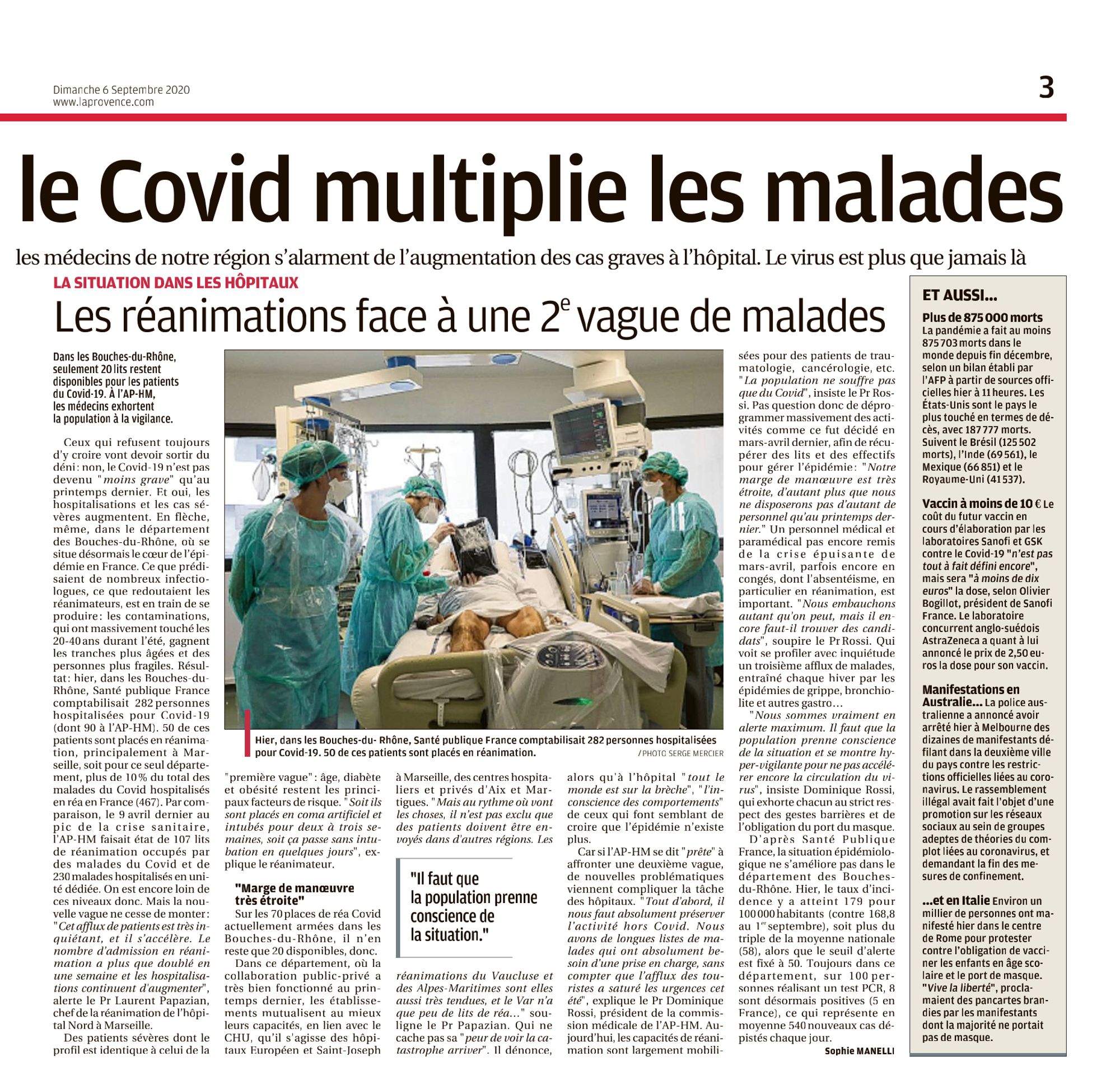 Les réanimations face à une 2ème vague de malades La Provence, 06/09/2020 La Provence, 06/09/2020 : Les réanimations face à une 2ème vague de malades (468.9 Ko)