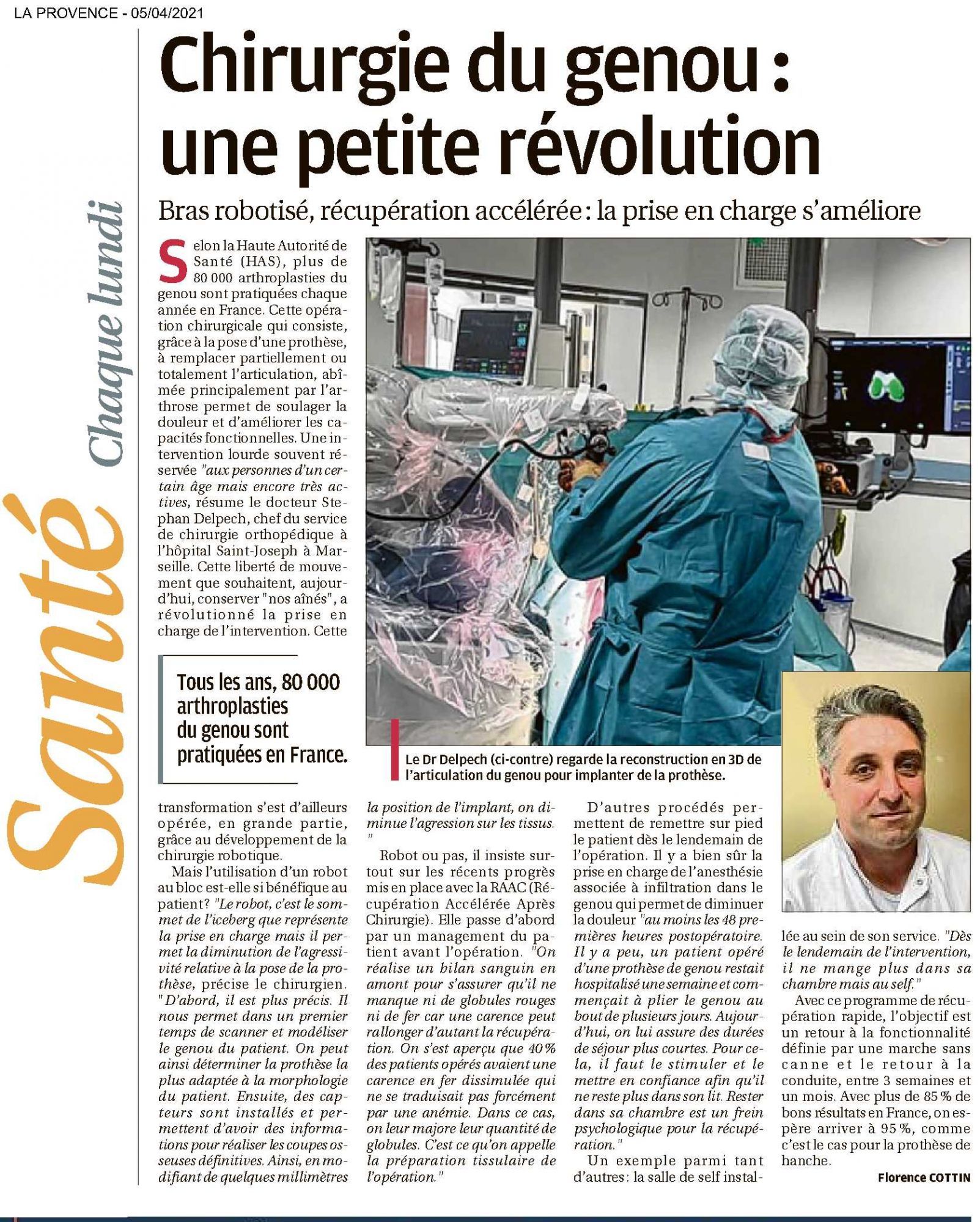 Chirurgie du genou : une petite révolution La Provence, 05/04/2021 La Provence, 05/04/2021 : Chirurgie du genou : une petite révolution (356.5 Ko)