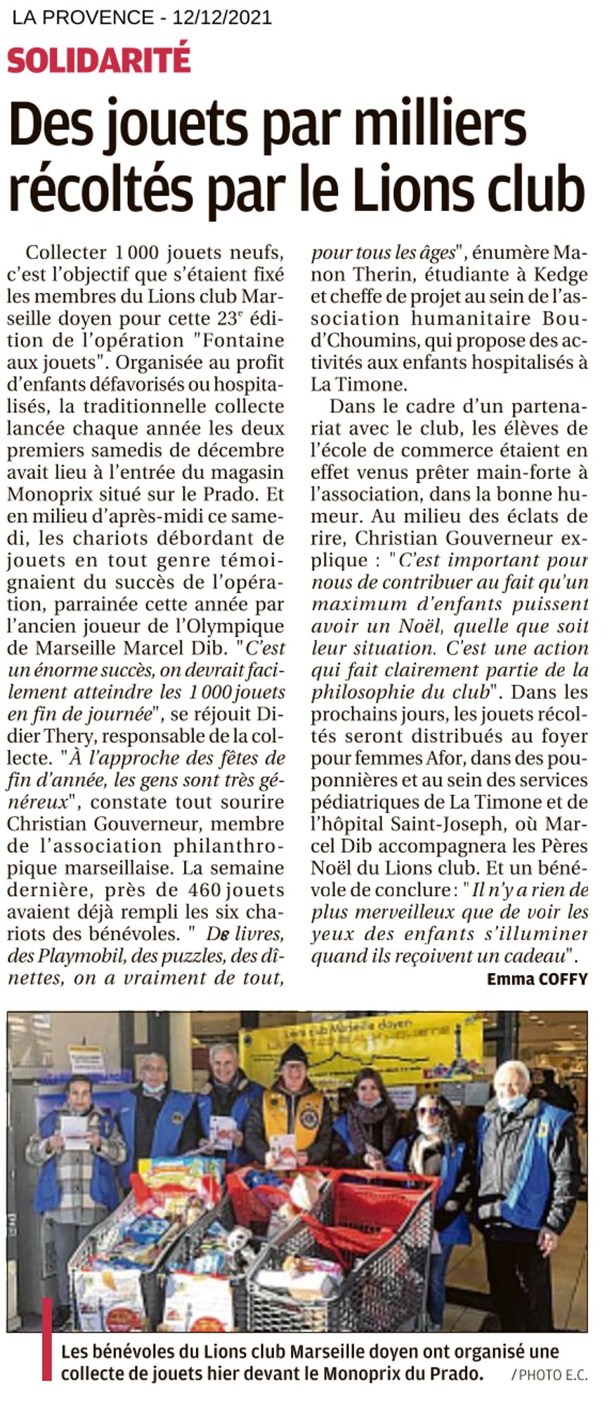 Des jouets par milliers récoltés par le Lions Club La Provence, 12/12/2021 La Provence, 12/12/2021 : Des jouets par milliers récoltés par le Lions Club (445.4 Ko)
