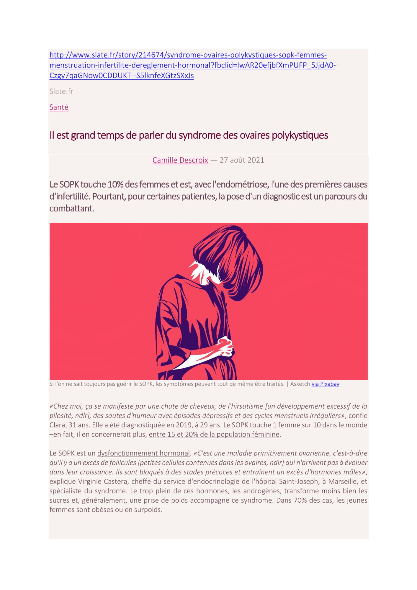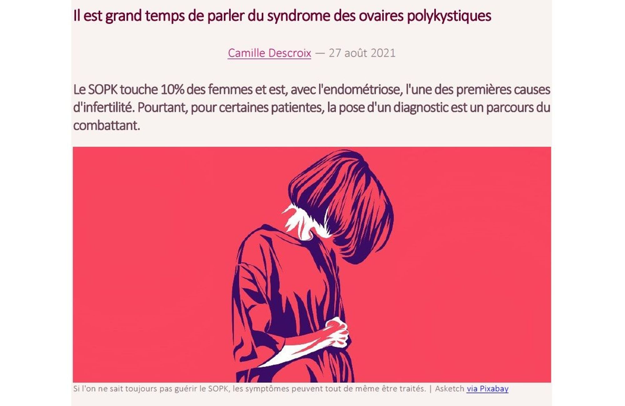"Le SOPK touche 10% des femmes et est, avec l'endométriose, l'une des premières causes d'infertilité. Pourtant, pour certaines patientes, la pose d'un diagnostic est un parcours du combattant."