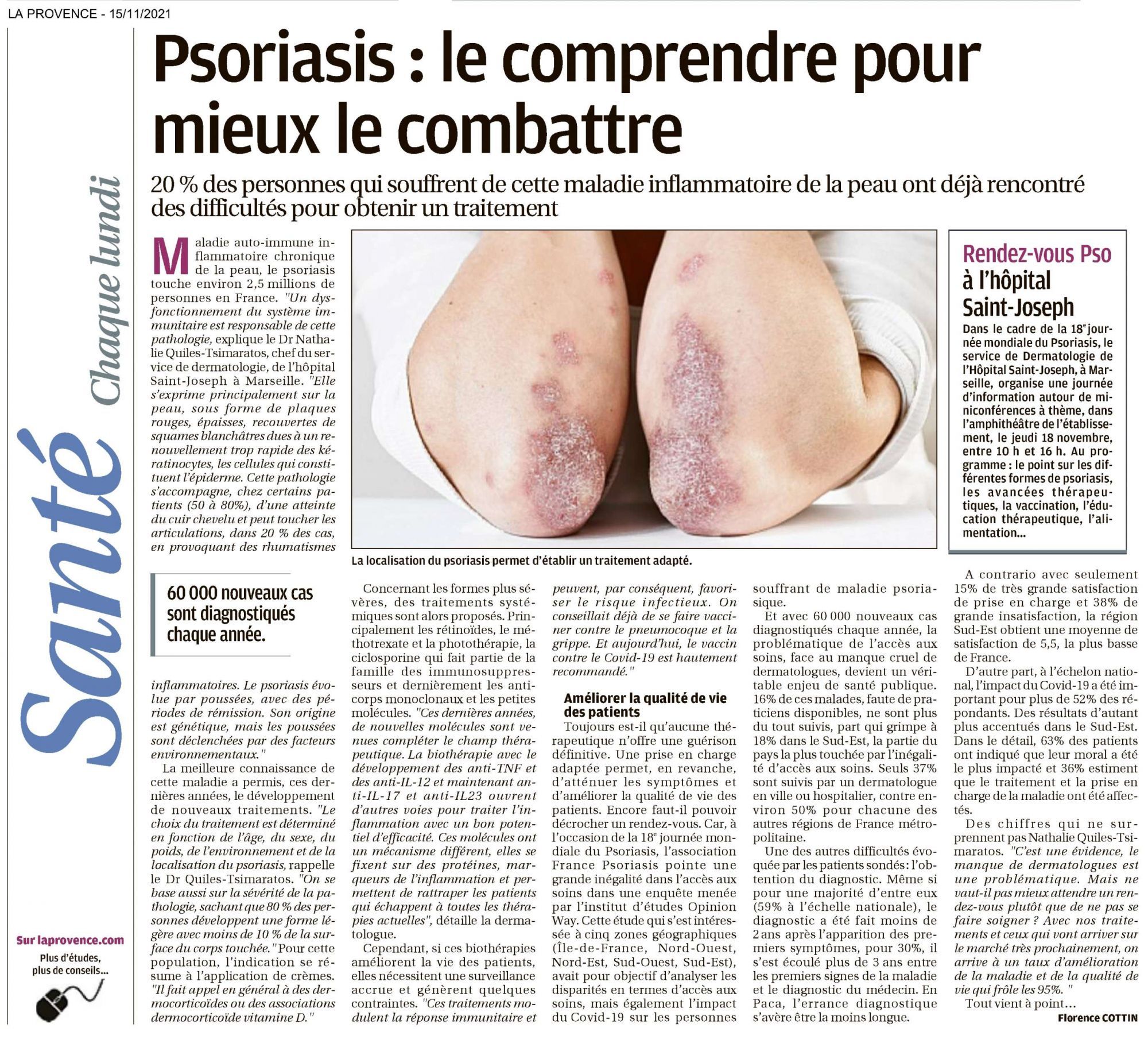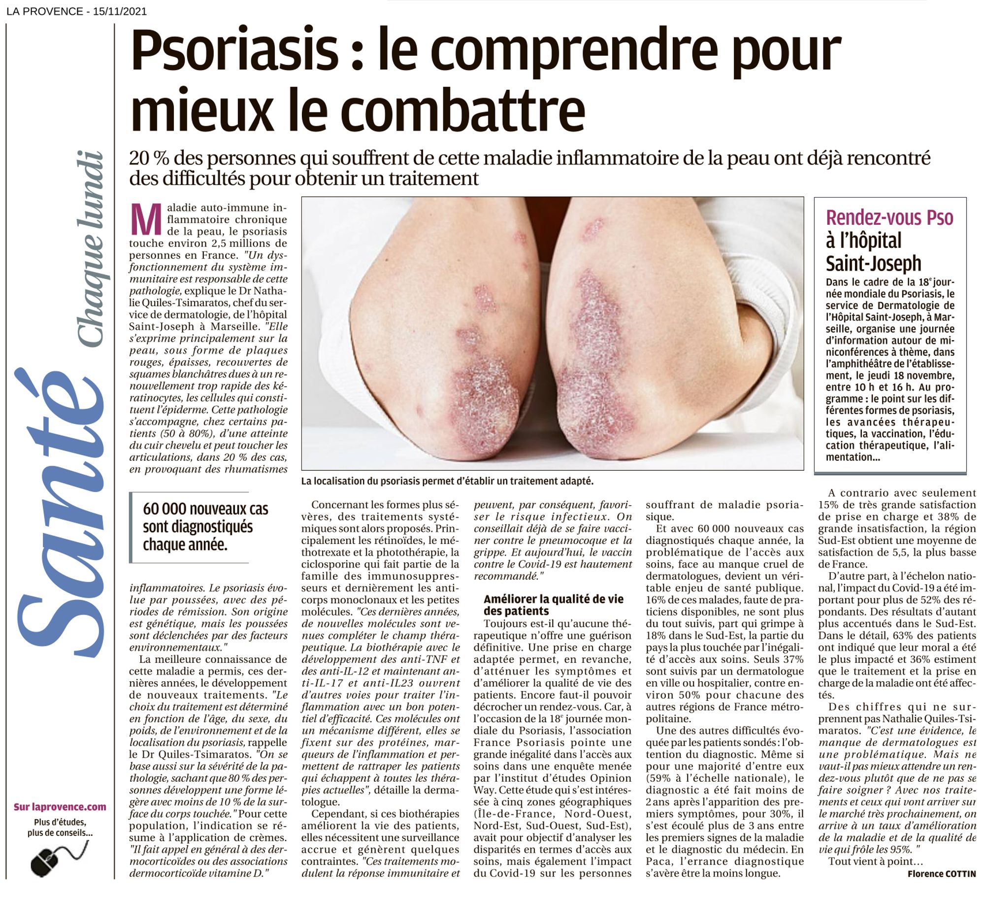 Psoriasis : le comprendre pour mieux le combattre La Provence, 15/11/2021 Psoriasis : le comprendre pour mieux le combattre (243.2 Ko)