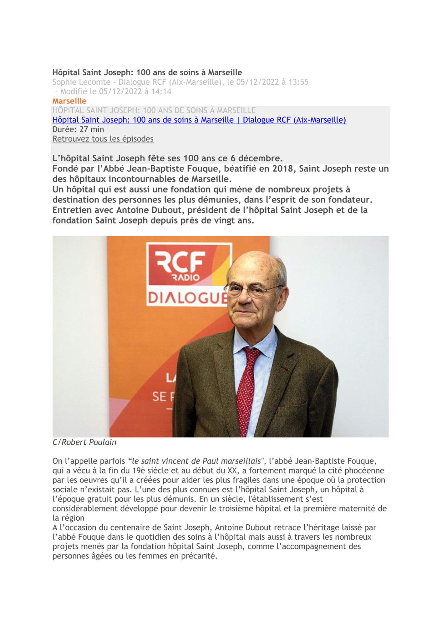 Hôpital Saint Joseph 100 ans de soins à Marseille : RCF - 05/12/2022 Hôpital Saint Joseph 100 ans de soins à Marseille : RCF - 05/12/2022 (179.2 Ko)