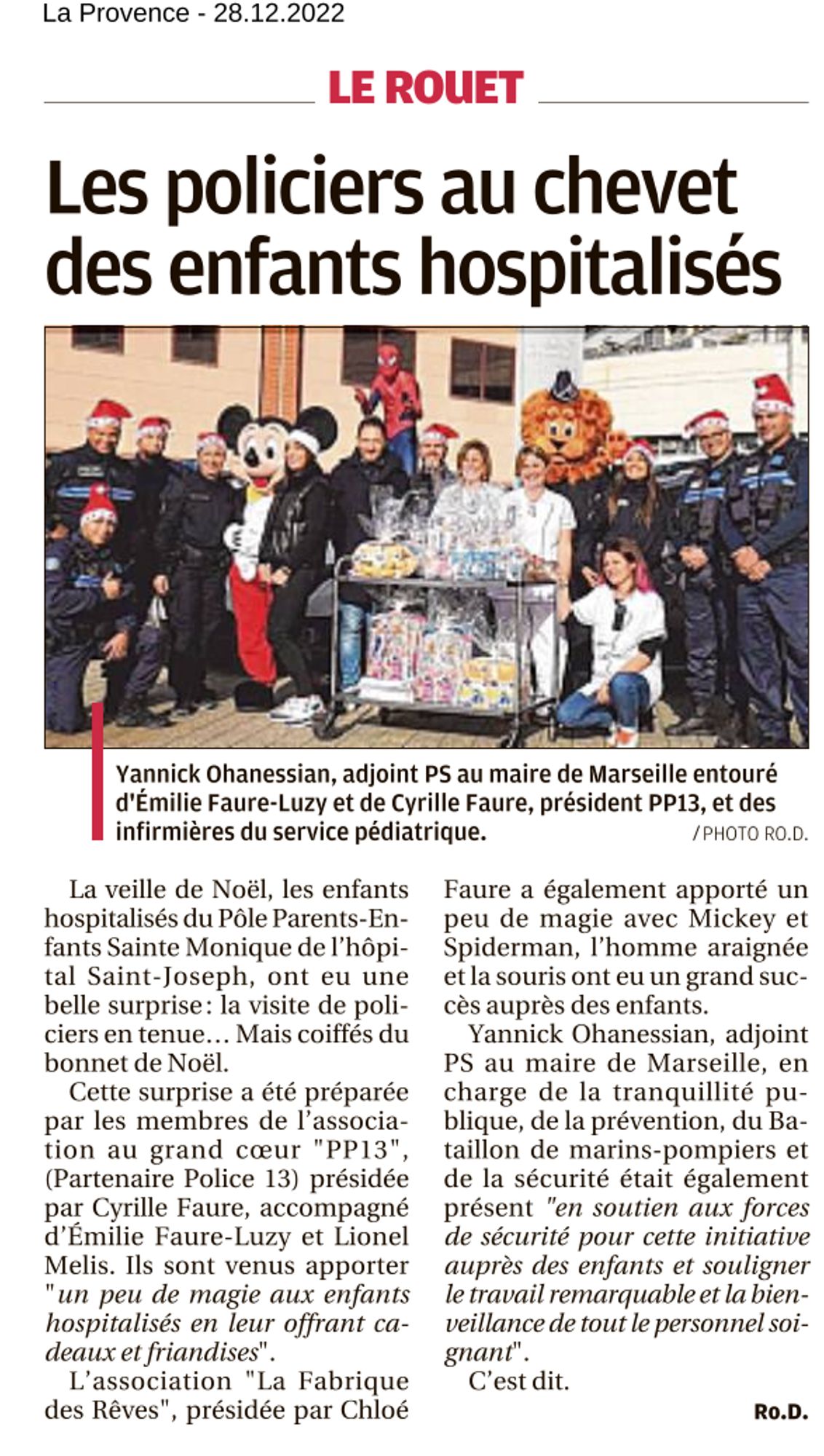 Les policiers au chevet des enfants hospitalisés : La Provence - 28/12/2022 Dernière modification : 2 février 2023 Les policiers au chevet des enfants hospitalisés : La Provence - 28/12/2022 (370.8 Ko)