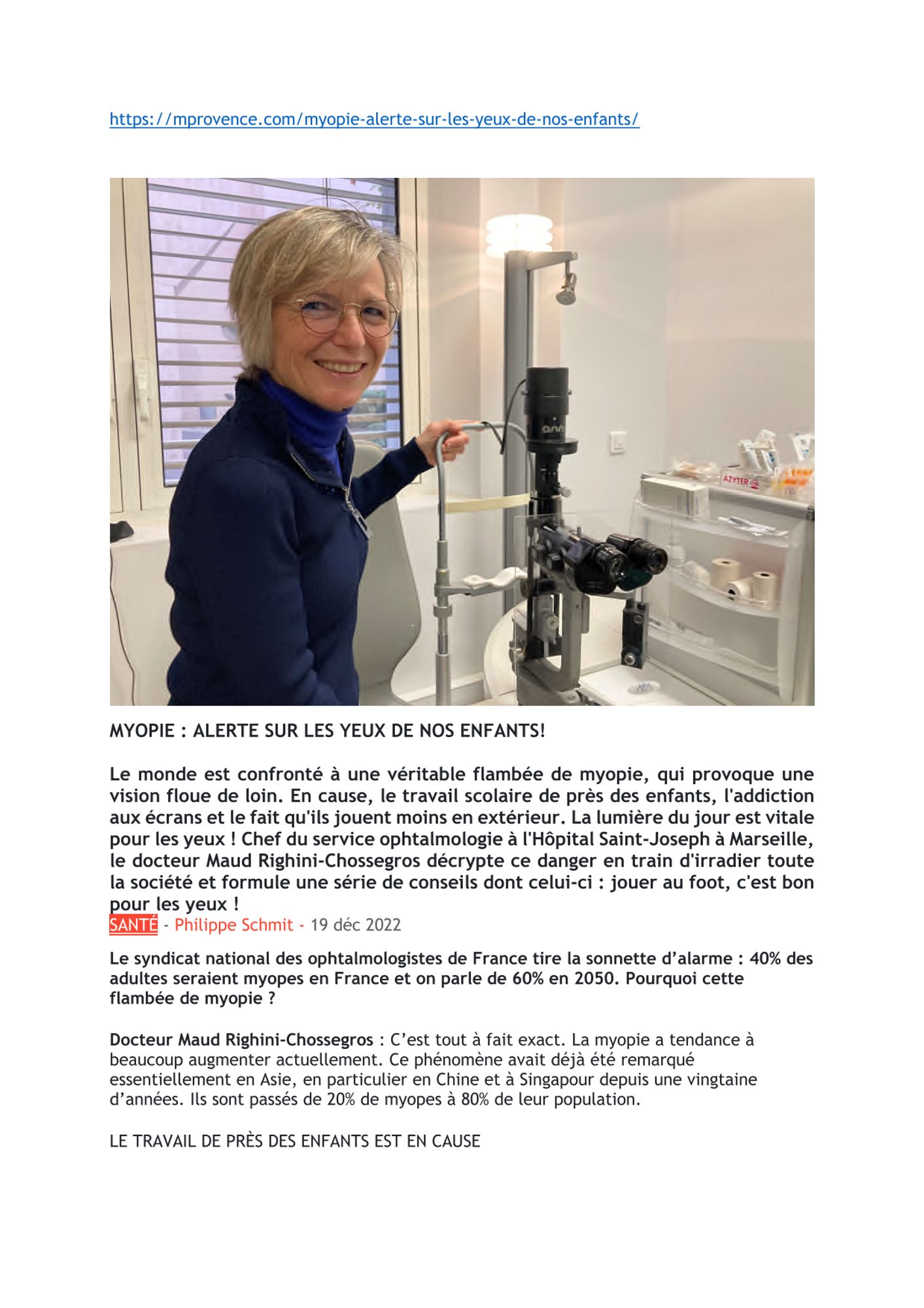 Myopie : alerte sur les yeux de nos enfants : Mprovence - 19/12/2022 Dernière modification : 2 février 2023 Myopie : Alerte sur les yeux de nos enfants : Mprovence - 19/12/2022 (150.9 Ko)