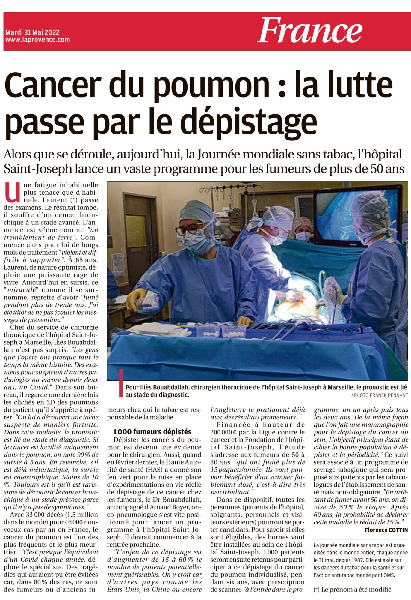 Cancer du poumon : la lutte passe par le dépistage La Provence, 31/05/2022 Cancer du poumon : la lutte passe par le dépistage (264.7 Ko)