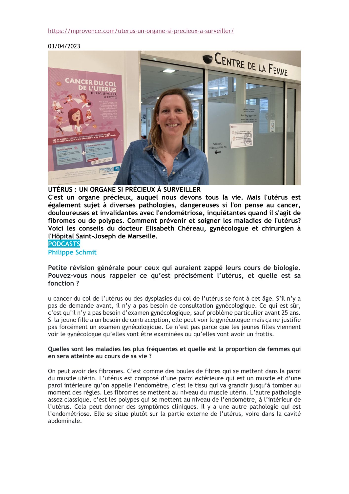 Utérus : un organe si précieux à surveiller : mprovence.com - 03/04/2023 Dernière modification : 20 novembre 2023 Utérus : un organe si précieux à surveiller : mprovence.com - 03/04/2023 (1.7 Mo)
