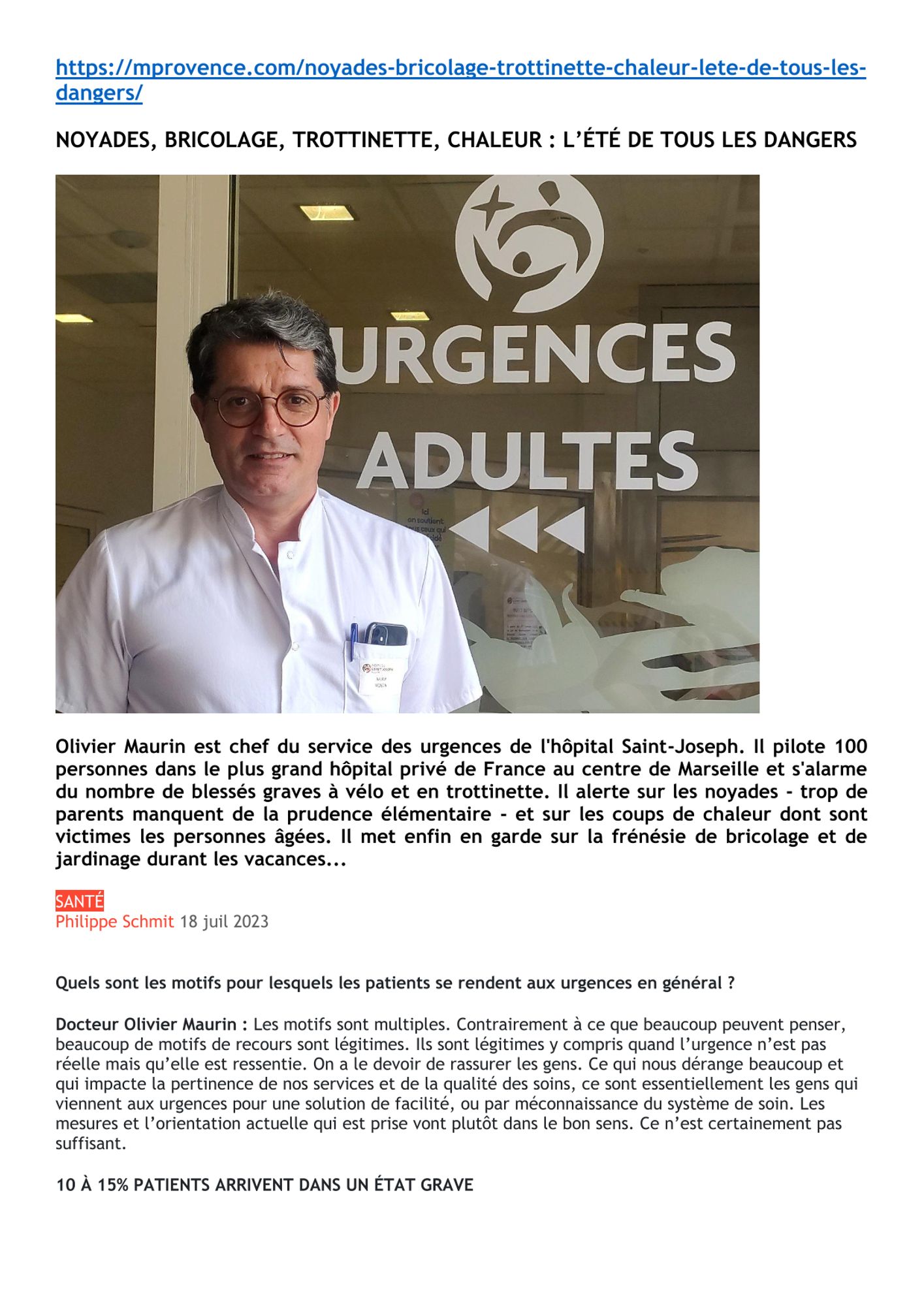 Noyades, bricolage, trottinette, chaleur, l'été de tous les dangers : mprovence.com - 18/07/2023 Dernière modification : 20 novembre 2023 Noyades, bricolage, trottinette, chaleur, l'été de tous les dangers : mprovence.com - 18/07/2023 (308.4 Ko)