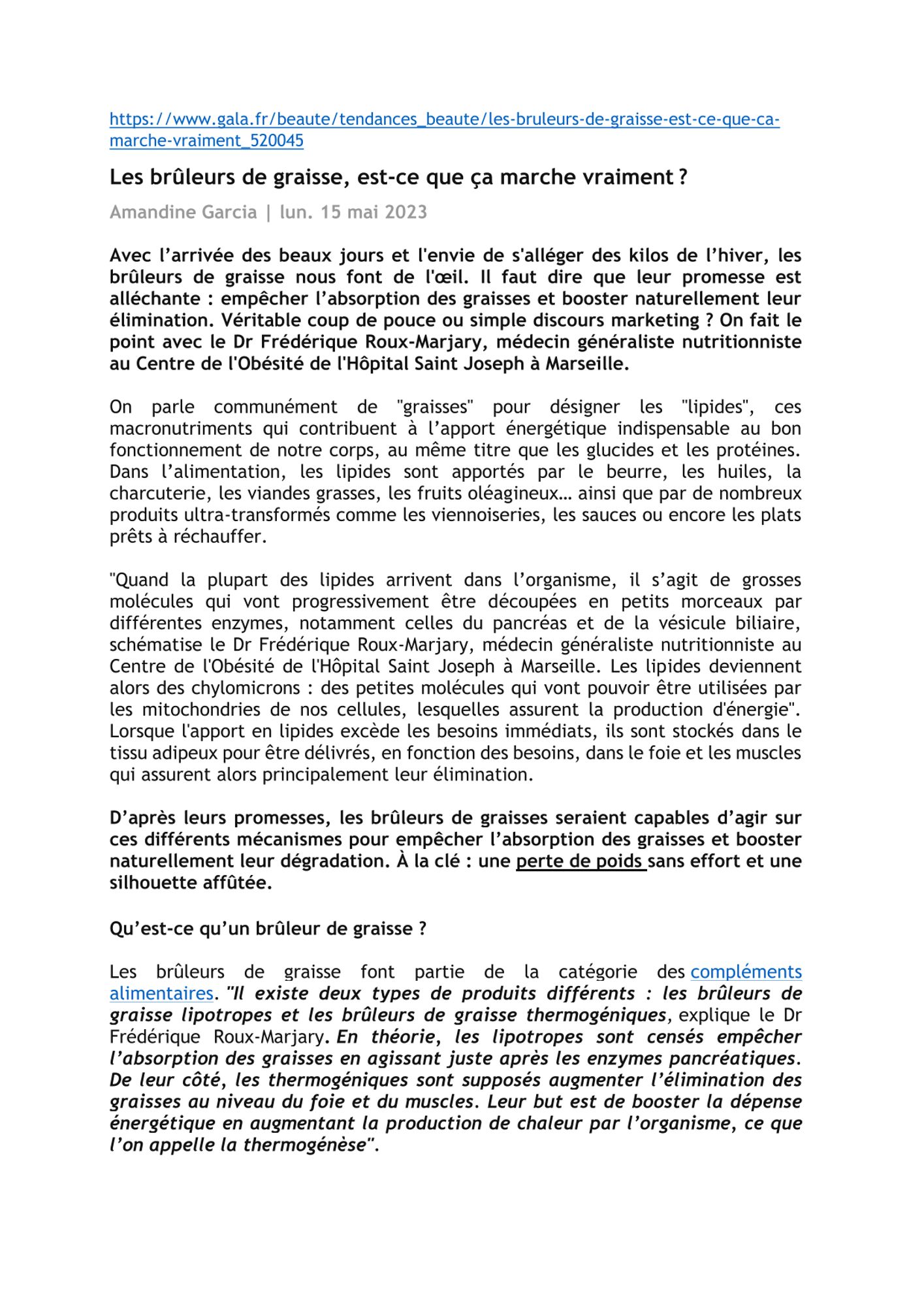 Les brûleurs de graisse, est-ce que ça marche vraiment ? : Gala.fr - 15/05/2023 Dernière modification : 22 juin 2023 Les brûleurs de graisse, est-ce que ça marche vraiment ? : Gala.fr - 15/05/2023 (325.4 Ko)