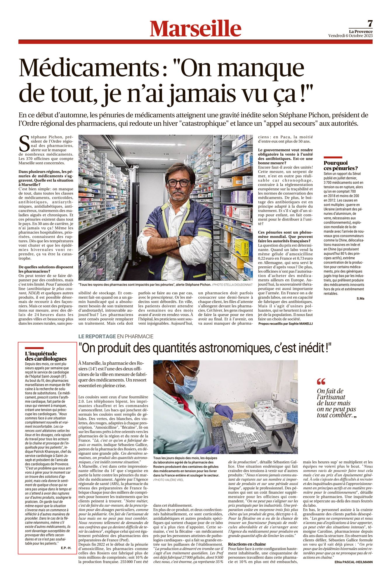 Médicaments : "On manque de tout, je n'ai jamais vu ça !" : La Provence - 06/10/2023 Intervention du Dr Patrick KHANOYAN : "L'inquiétude des cardiologues" Dernière modification : 20 novembre 2023 Médicaments : "On manque de tout, je n'ai jamais vu ça !" : La Provence - 06/10/2023 (638.0 Ko) Médicaments : "On manque de tout, je n'ai jamais vu ça !" : La Provence - 06/10/2023