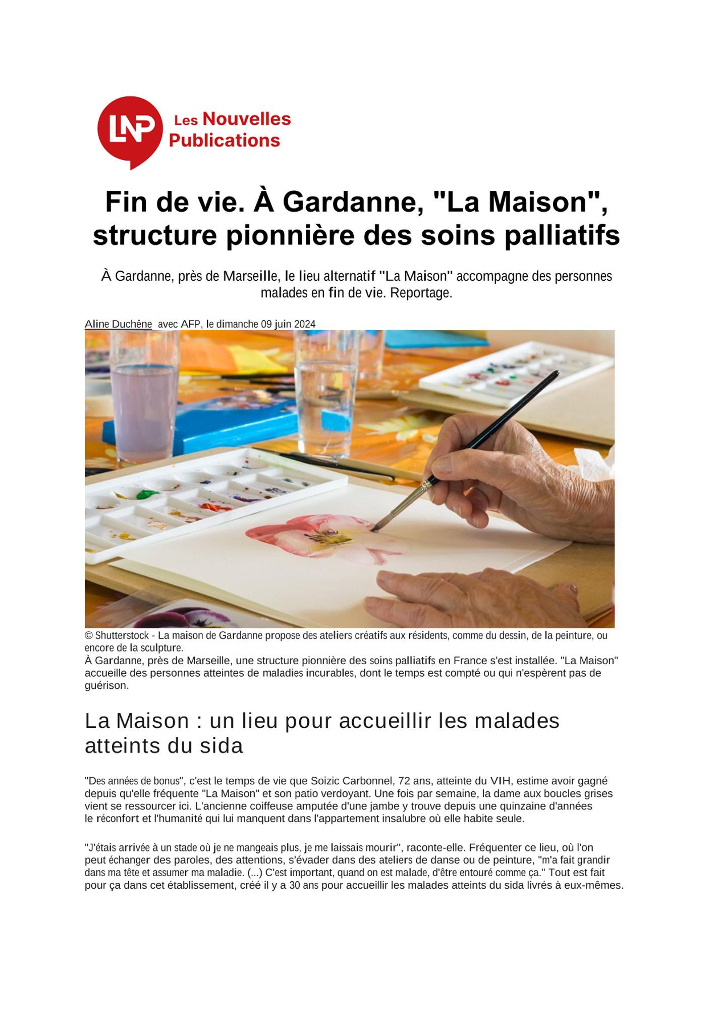 Les Nouvelles Publications : Fin de vie. À Gardanne, "La Maison", structure pionnière des soins palliatifs Les Nouvelles Publications (698.9 Ko)