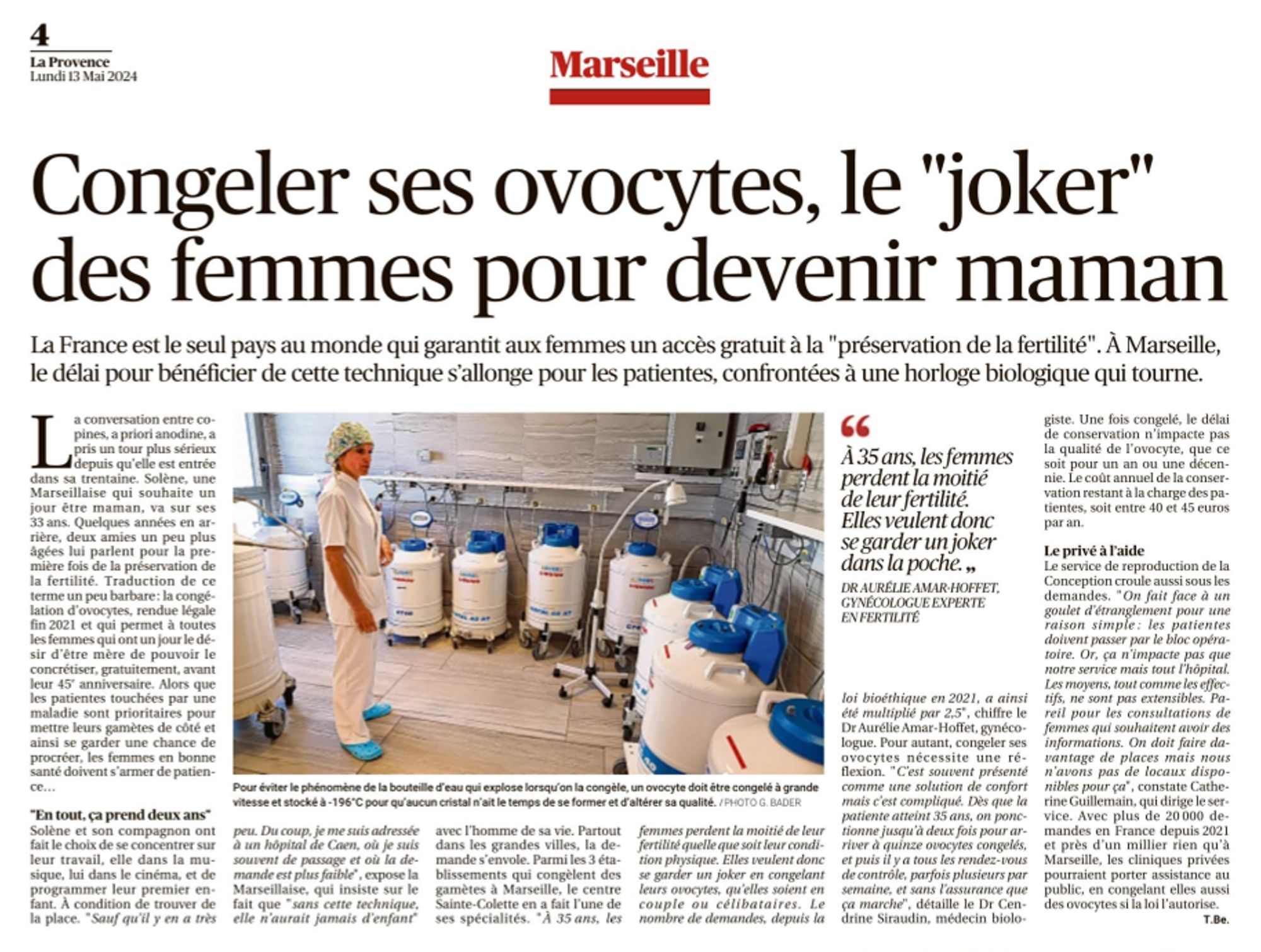 La Provence, 13 mai 2024 : Congeler ses ovocytes, le « joker » des femmes pour devenir maman La Provence, 13 mai 2024 : Congeler ses ovocytes, le « joker » des femmes pour devenir maman (1.3 Mo)