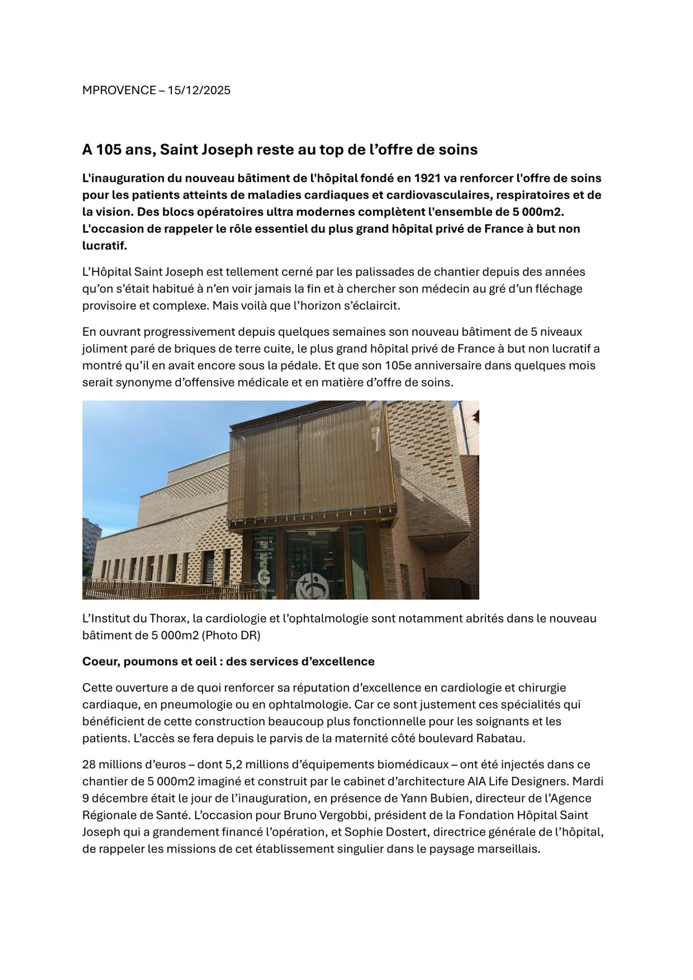 MProvence - 12/12/2025 : A 105 ans, Saint Joseph reste au top de l'offre de soins MProvence - 12/12/2025 : A 105 ans, Saint Joseph reste au top de l'offre de soins (620.5 Ko)