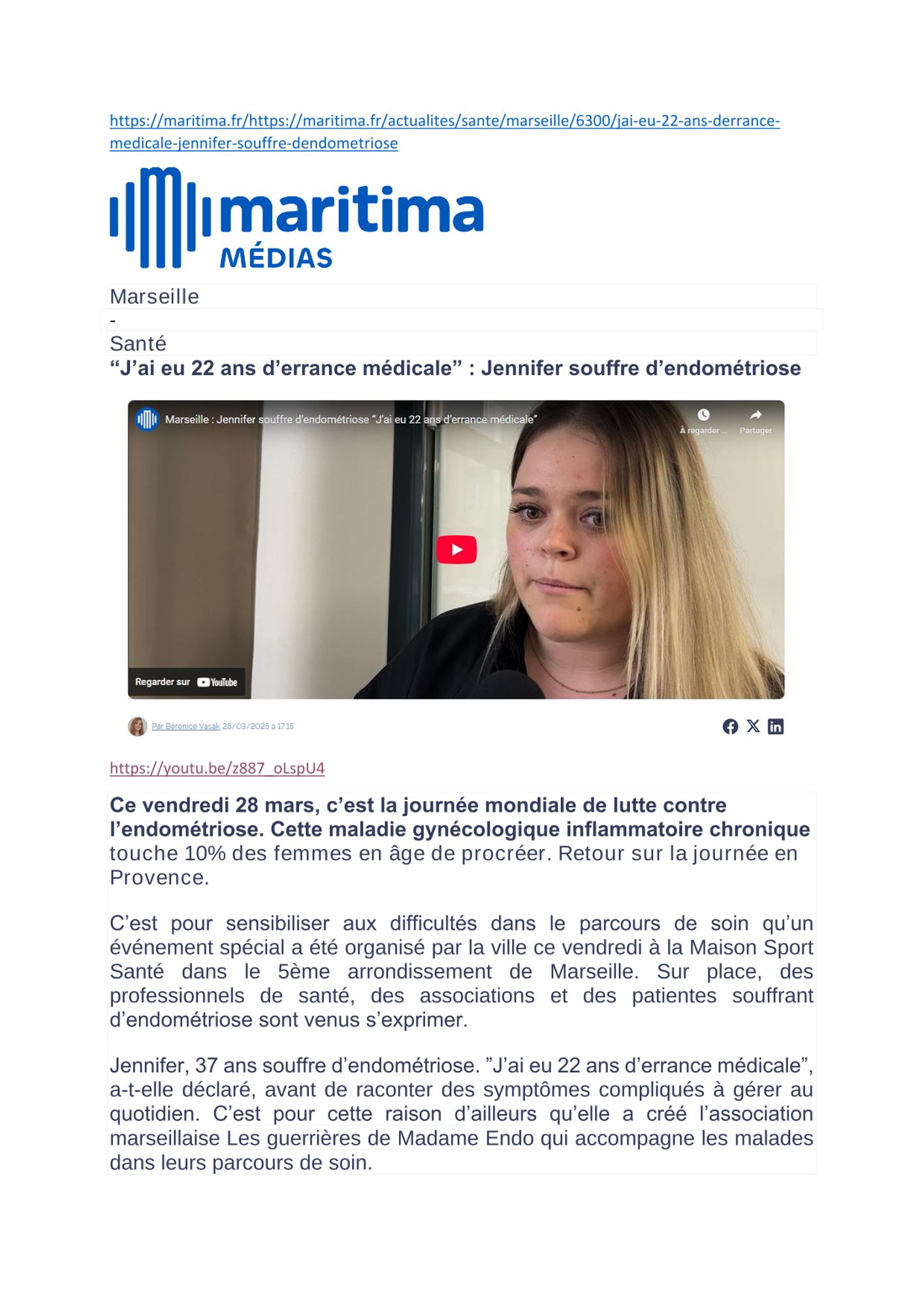 Maritima.fr - 28/03/2025 - “J’ai eu 22 ans d’errance médicale” : Jennifer souffre d’endométriose Maritima.fr - 28/03/2025 - “J’ai eu 22 ans d’errance médicale” : Jennifer souffre d’endométriose (479.3 Ko)