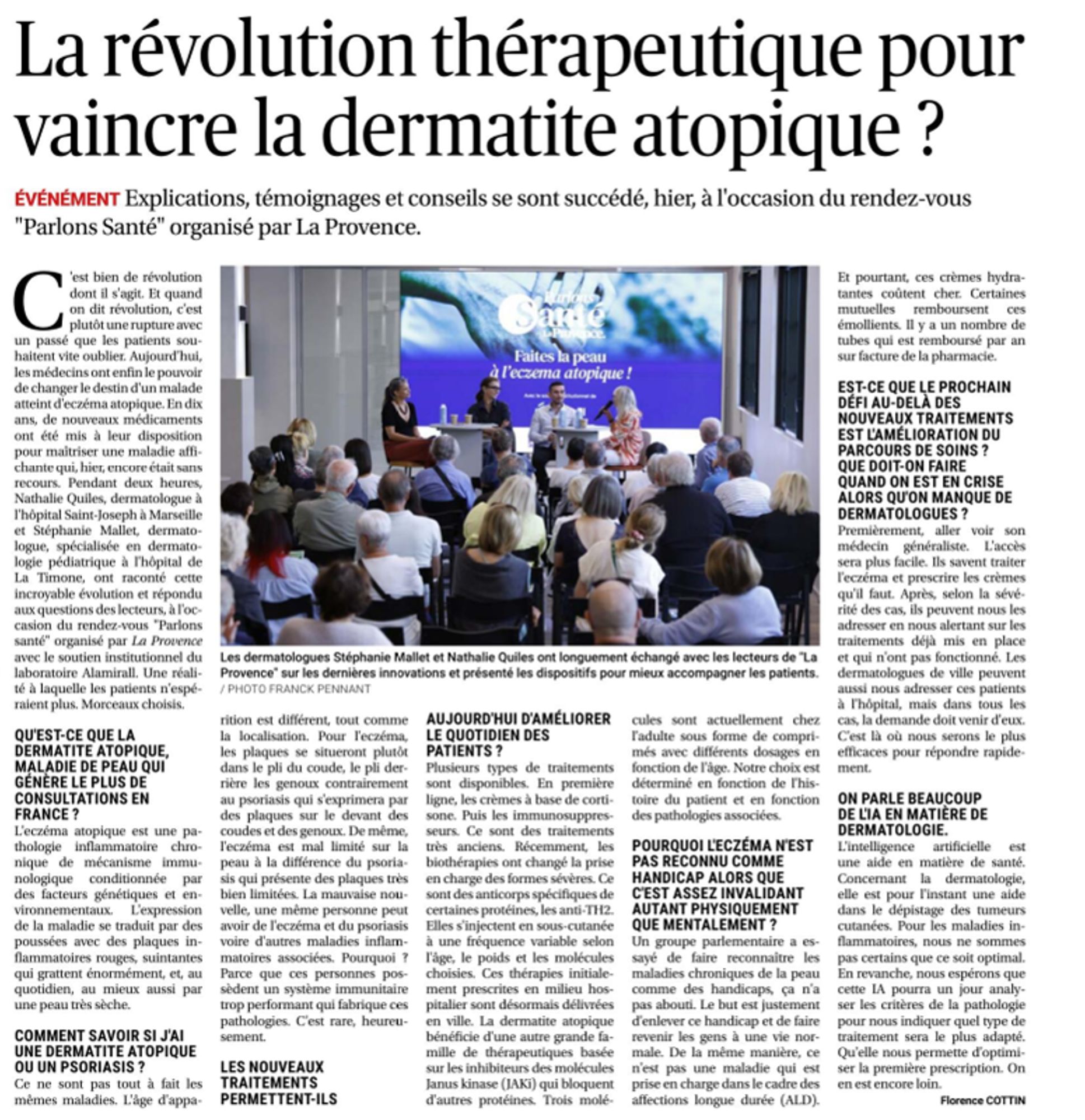 La Provence - 13/09/2025 : La révolution thérapeutique pour vaincre la dermatite atopique La Provence - 13/09/2025 : La révolution thérapeutique pour vaincre la dermatite atopique ? (1.4 Mo)