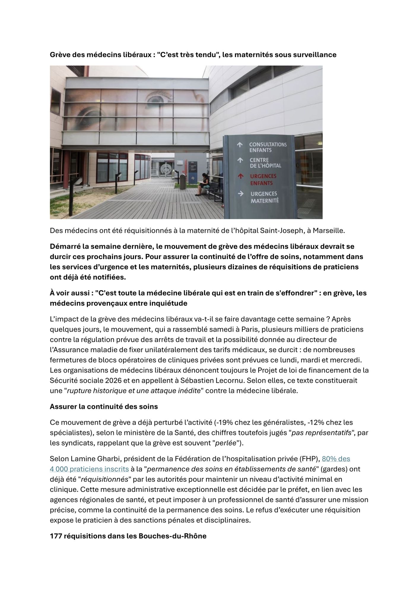 La Provence - 11/01/2026 - Grève des médecins libéraux : "C’est très tendu", les maternités sous surveillance La Provence - 11/01/2026 - Grève des médecins libéraux : "C’est très tendu", les maternités sous surveillance (145.1 Ko)
