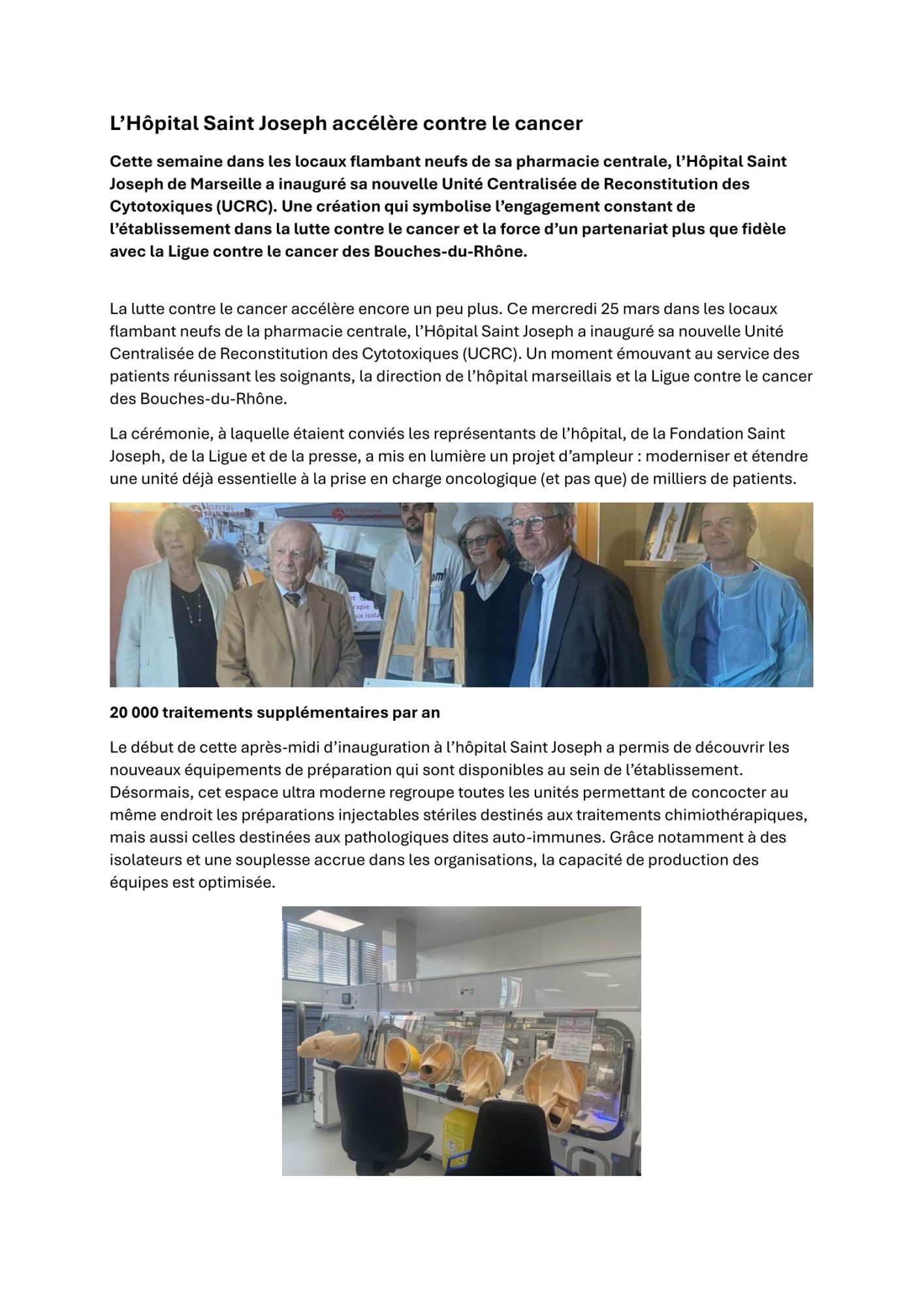L'Hôpital Saint Joseph accélère contre le cancer L'Hôpital Saint Joseph accélère contre le cancer (266.2 Ko)