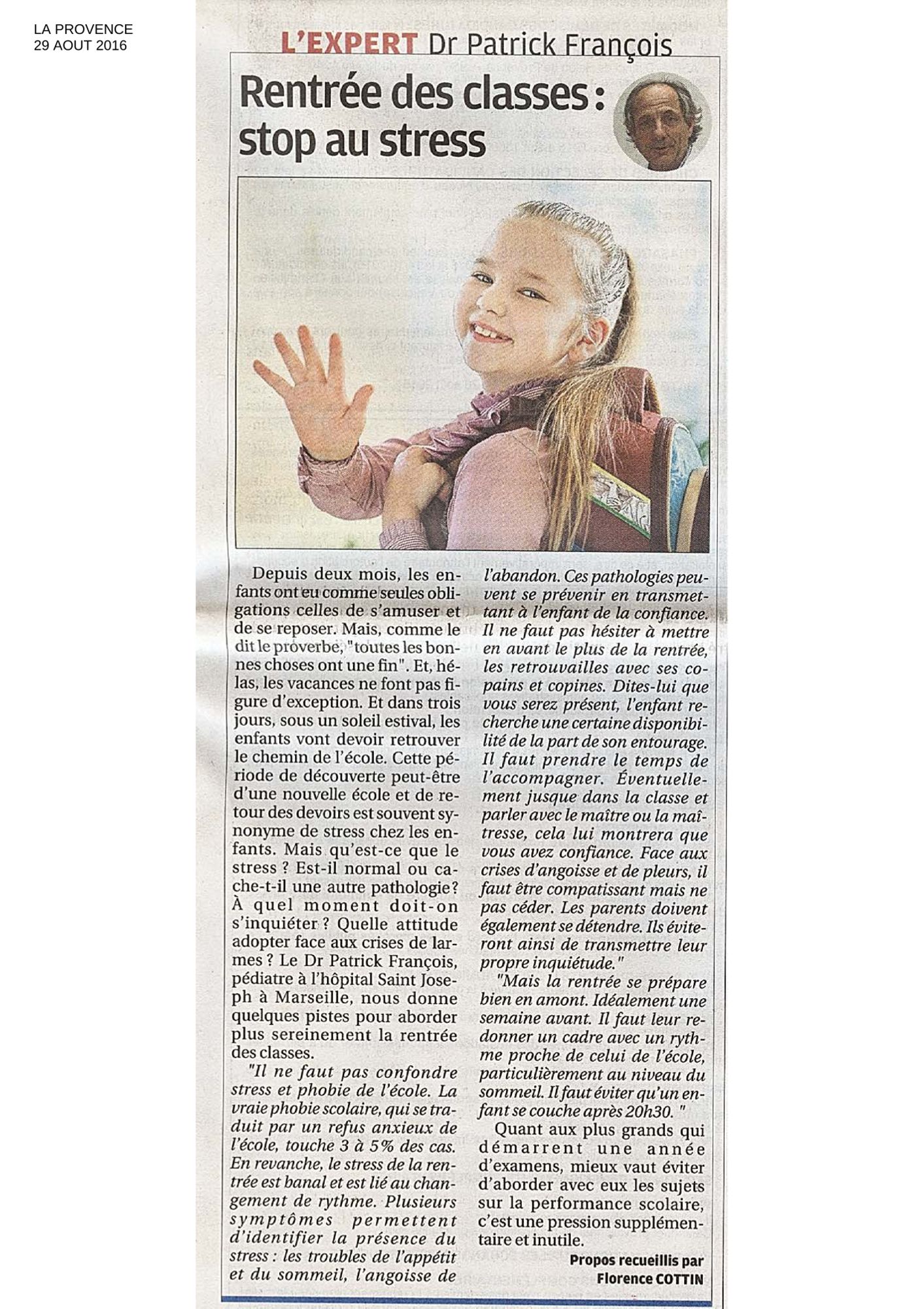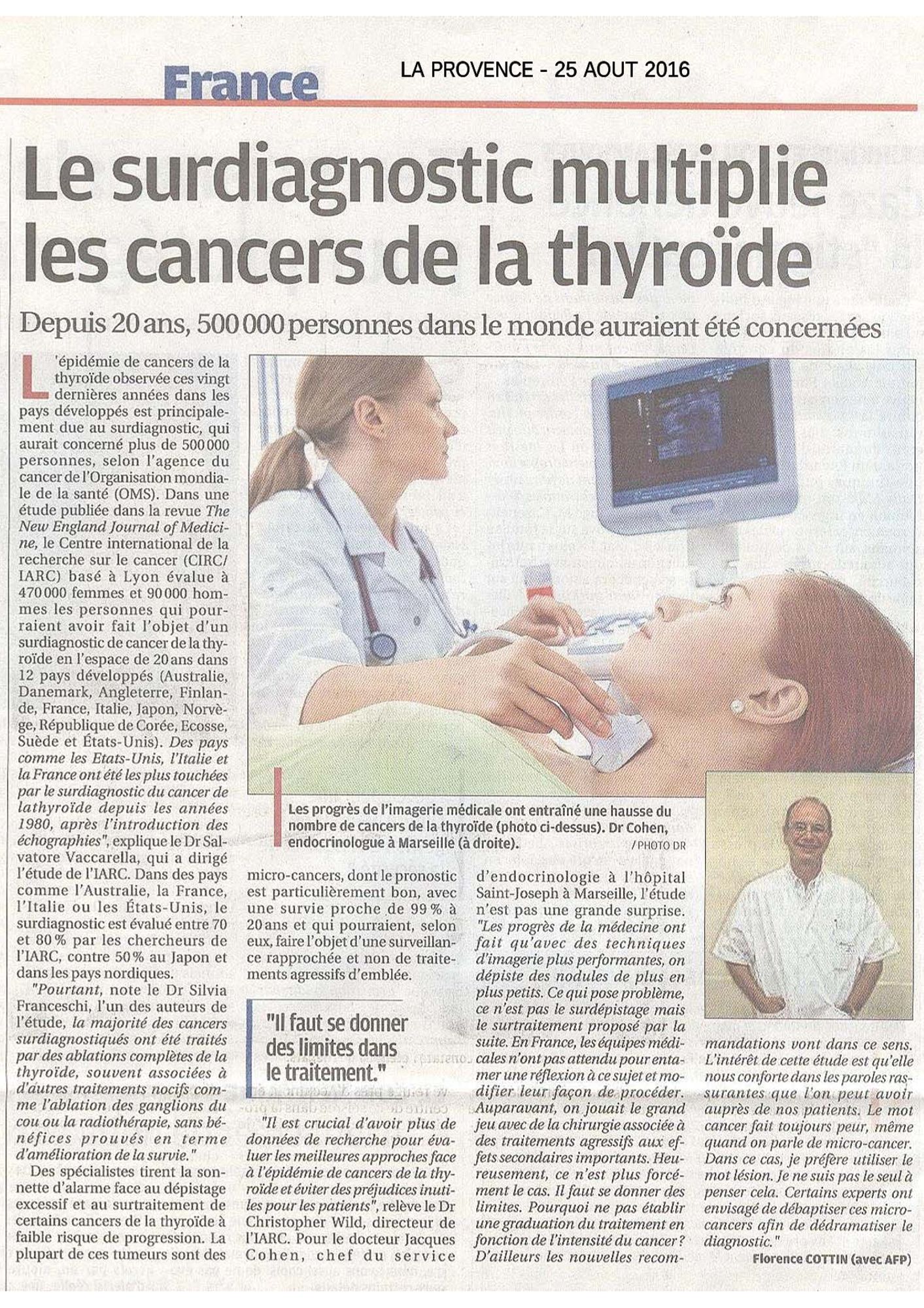 Août 2016 Dernière modification : 8 février 2019 29 août 2016 :La Provence - Rentrée des classes : stop au stress 25 août 2016 :La Provence - Le surdiagnostic multiplie les cancers de la thyroïde La Provence - Rentrée des classes : stop au stress 29/08/2016 (318.9 Ko) La Provence - Le surdiagnostic multiplie les cancers de la thyroïde - 25/08/2016 (415.6 Ko)