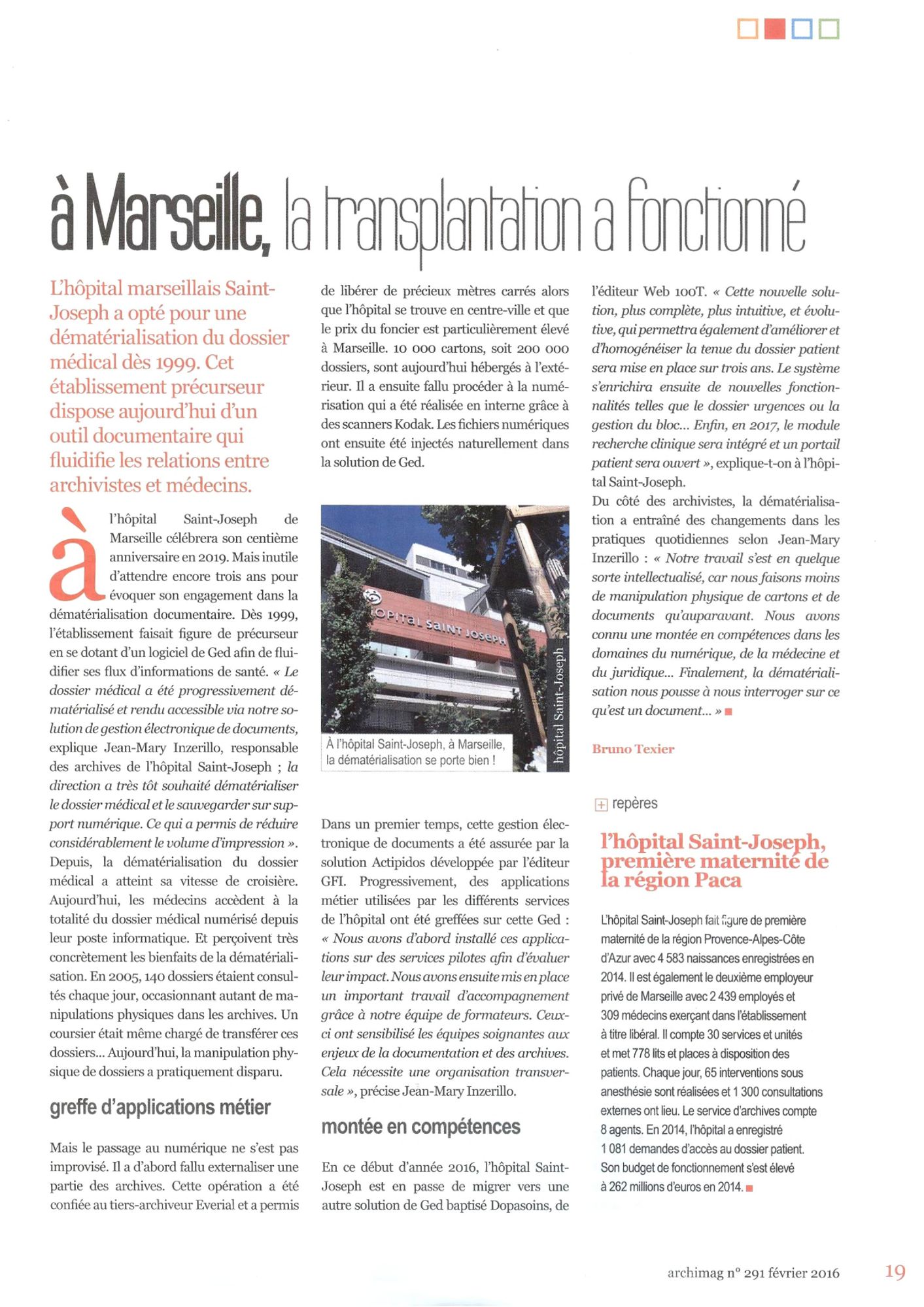 Archimag - Dématérialisation du dossier médical - Février 2016 :