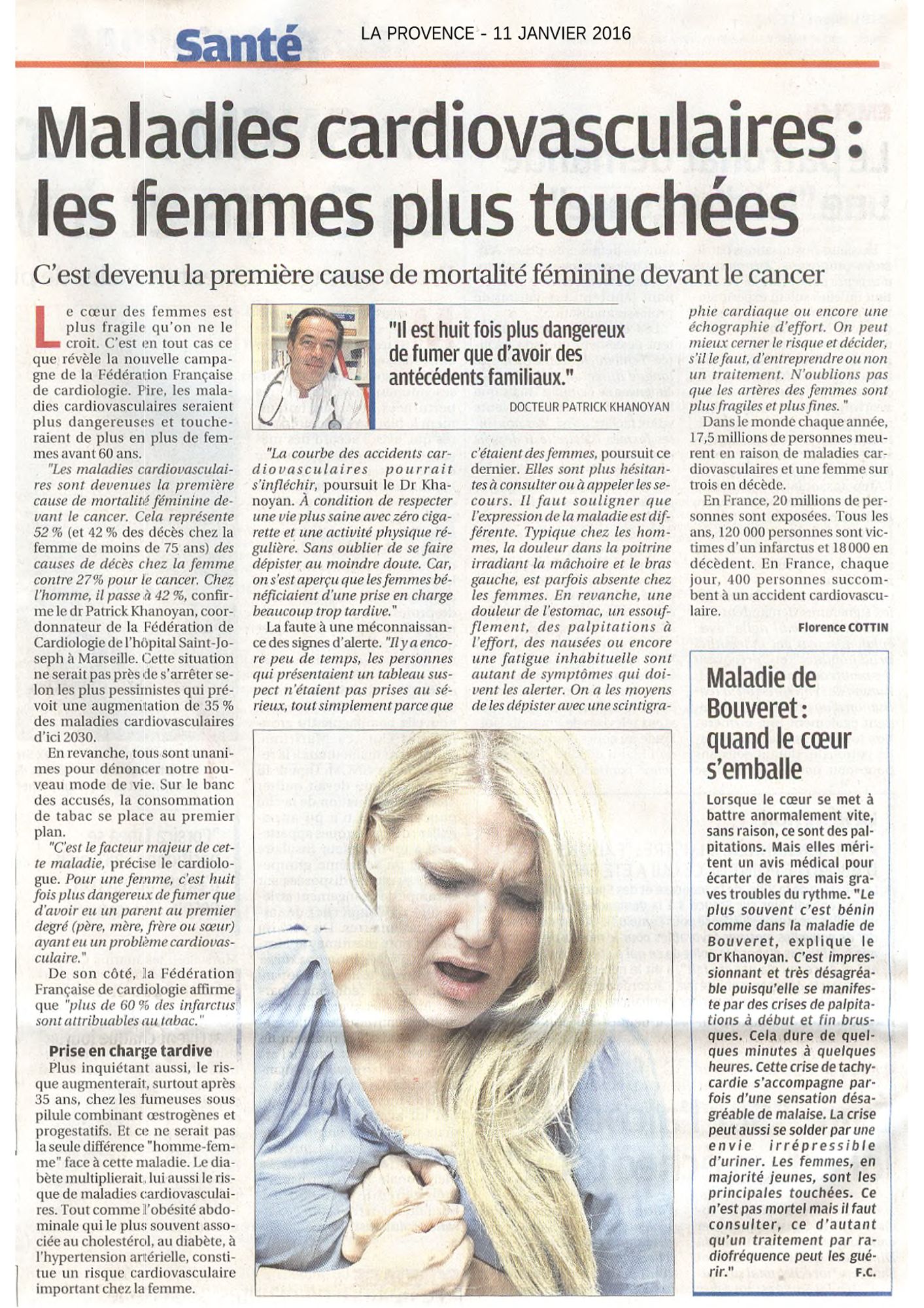 La Provence - Maladies cardiovasculaires : les femmes plus touchées - 07 janvier 2016