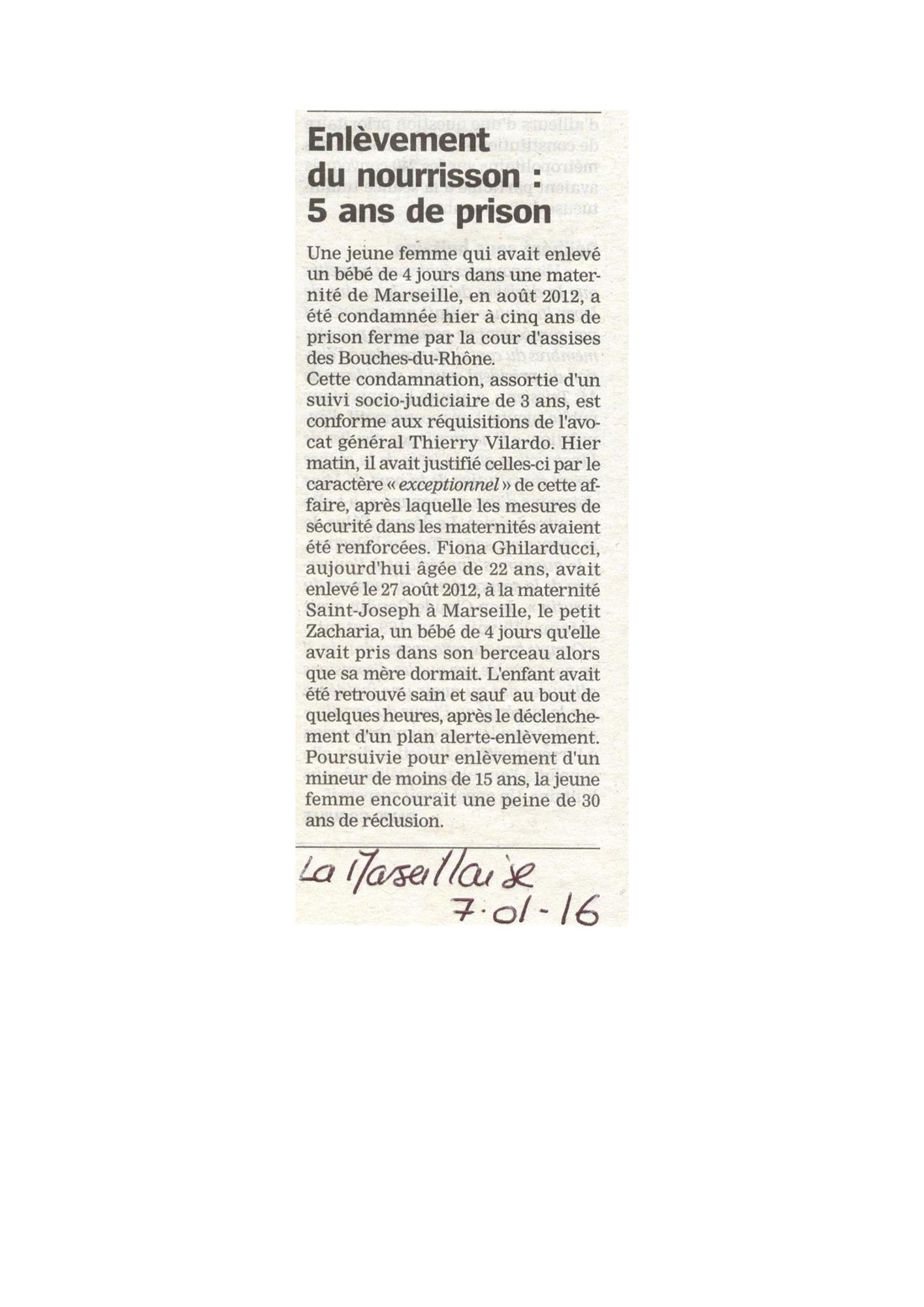 La Marseillaise - Enlèvement du nourisson, 5 ans de prison - 05 janvier 2016