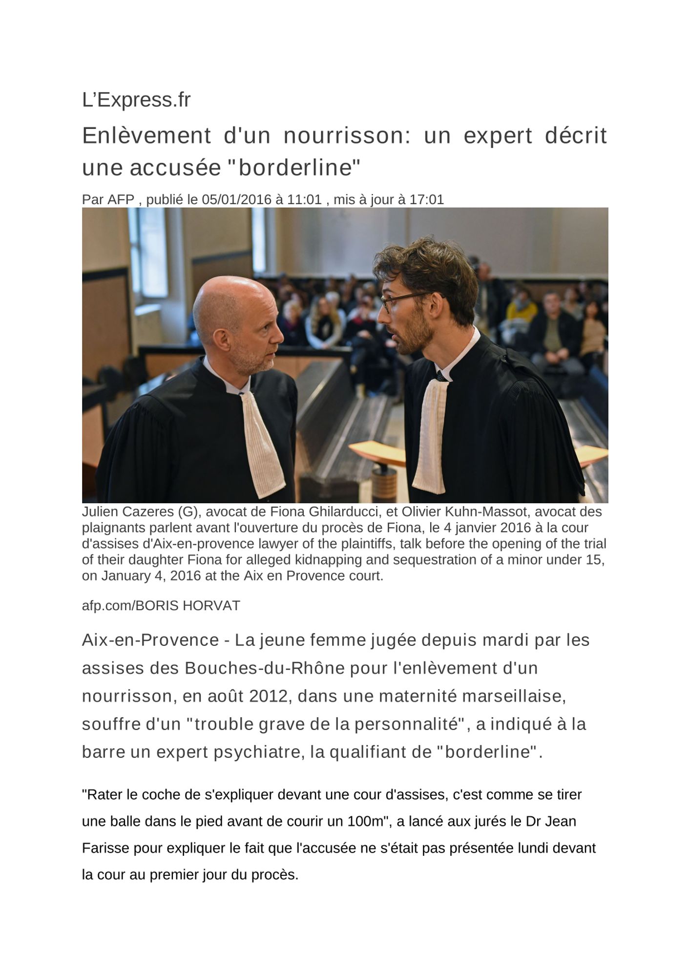 20 Minutes - Procès : enlèvement du nourisson - Janvier 2016