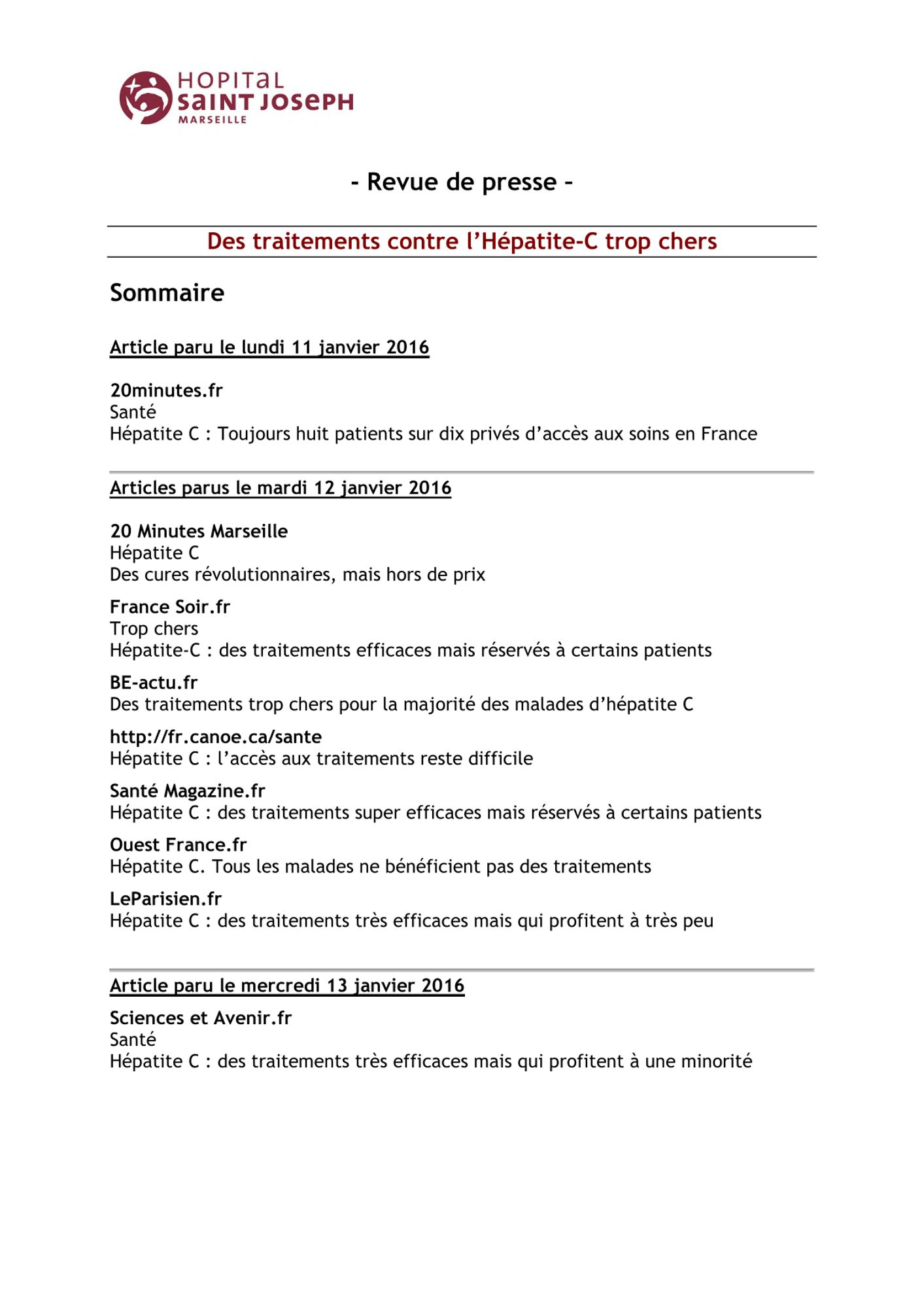 Des traitements contre l'Hépatite-C trop chers - Janvier 2016