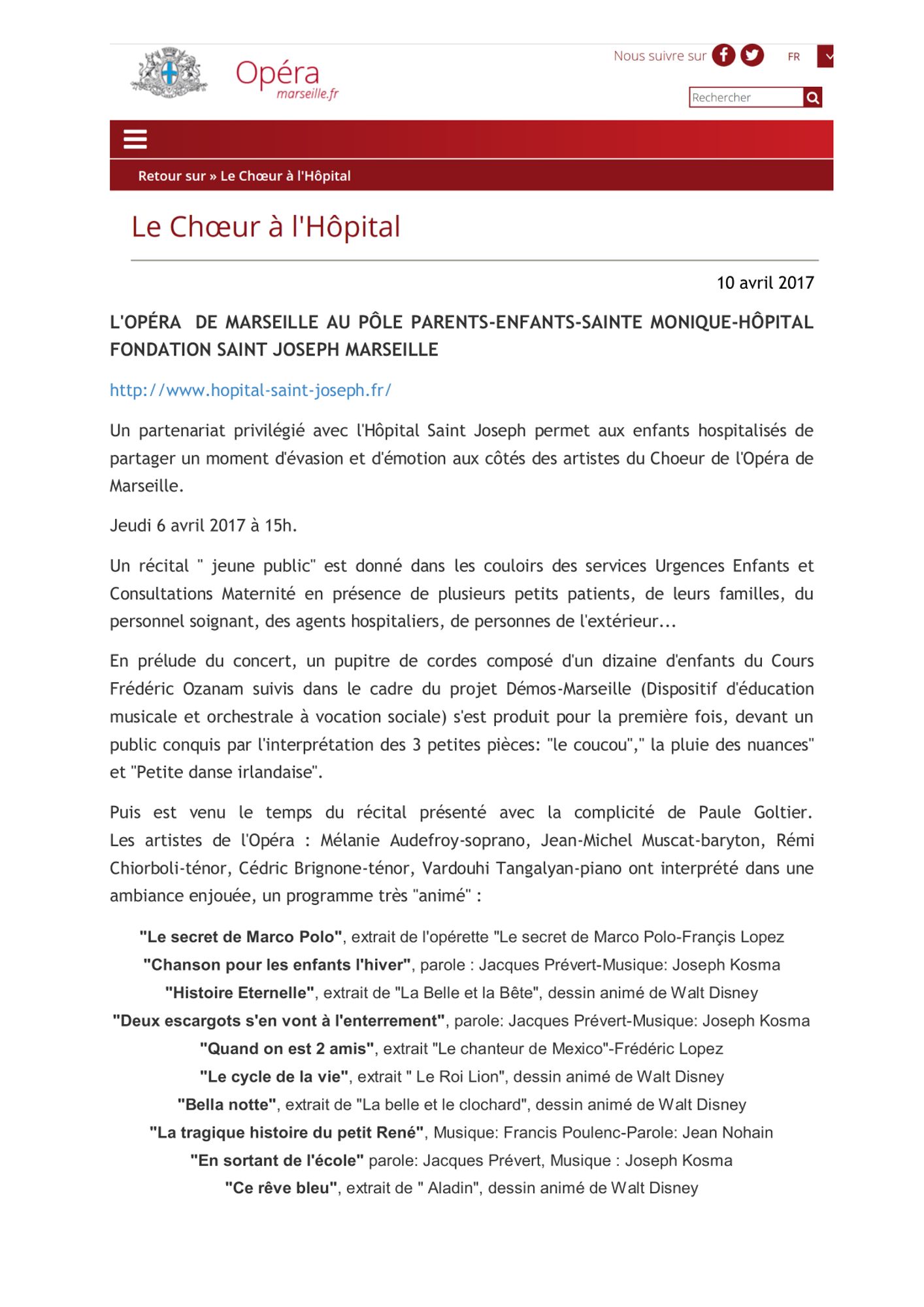 Marseille.fr, 10/04/2017 : Le Choeur à l'Hôpital Marseille.fr, 10 avril 2017 : Le Choeur à l'Hôpital (613.9 Ko)