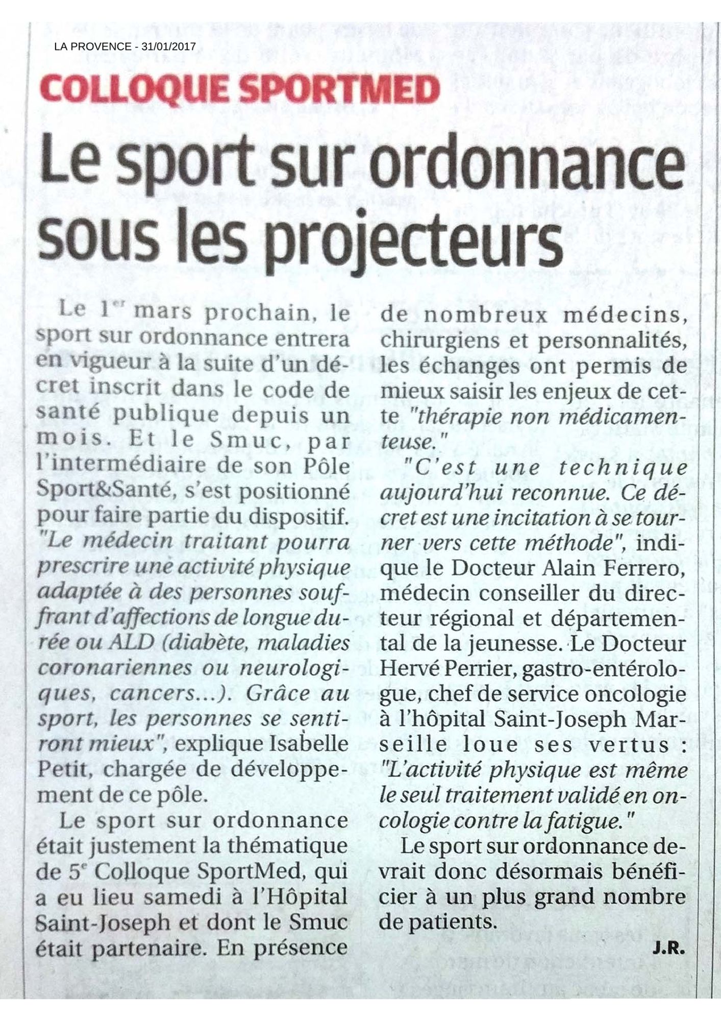 La Provence, 31/01/ 2017 : Le sport sur ordonnance sous les projecteurs 31/01/ 2017 : La Provence - Le sport sur ordonnance sous les projecteurs (283.6 Ko)