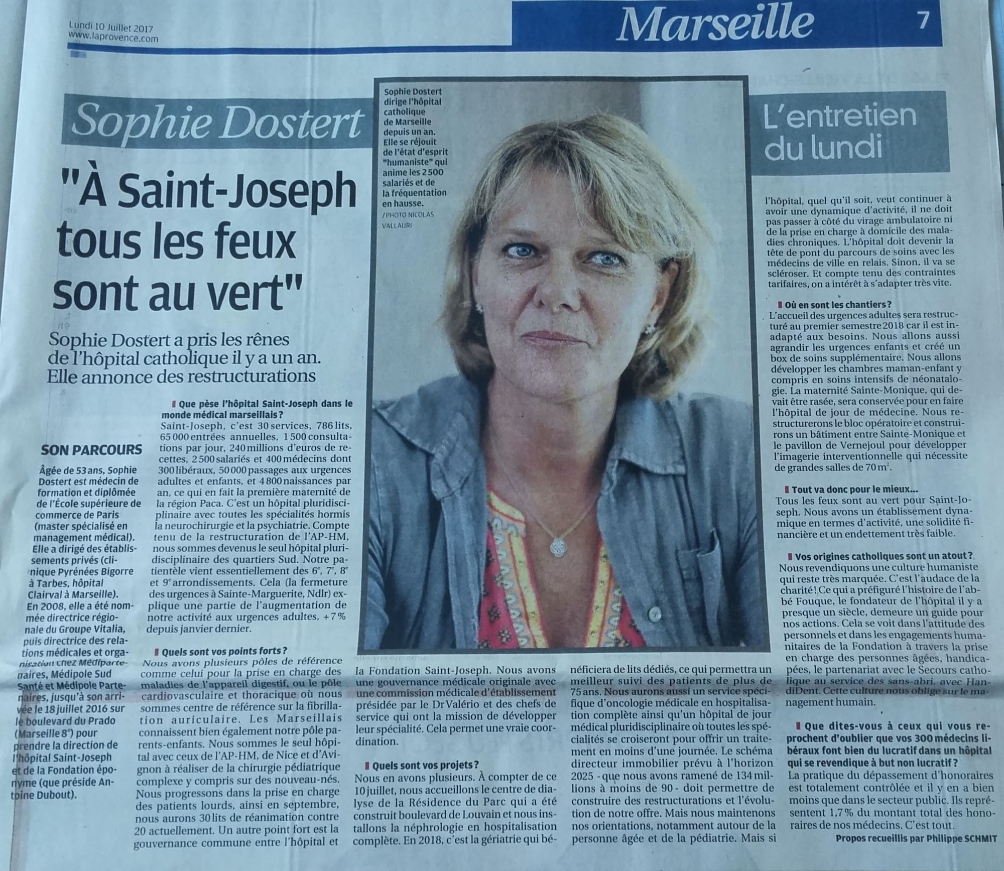 La Provence, 10/07/2017 : L'entretien du lundi - Sophie Dostert : "A Saint Joseph tous les feux sont au vert" La Provence, 10 juillet 2017 : L'entretien du lundi - Sophie Dostert : "A Saint Joseph tous les feux sont au vert" (2.0 Mo)