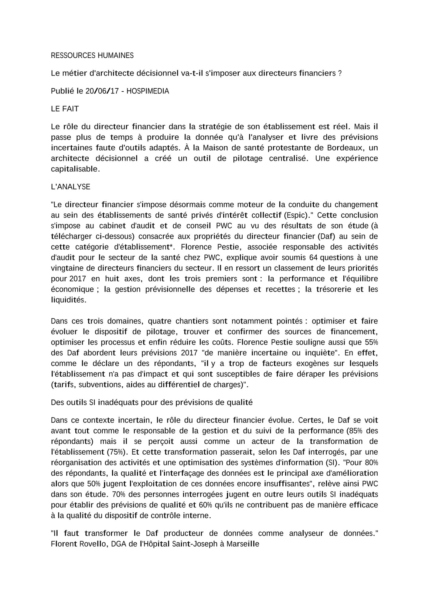Hospimedia, 20/06/2017 : Interview de Florent Rovello - Le métier d'architecte décisionnel va-t-il s'imposer aux directeurs financiers ? Hospimedia, 20 juin 2017 : Interview de Florent Rovello - Le métier d'architecte décisionnel va-t-il s'imposer aux directeurs financiers ? (210.5 Ko)