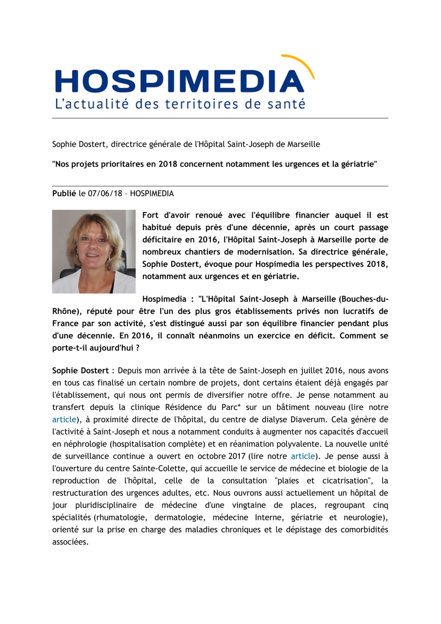 Hospimédia, 07/06/2018: "Nos projets prioritaires en 2018 concernent notamment les urgences et la gériatrie", entretien avec Mme Dostert Hospimédia, 07/06/2018 : "Nos projets prioritaires en 2018 concernent notamment les urgences et la gériatrie", entretien avec Mme Dostert (141.3 Ko)
