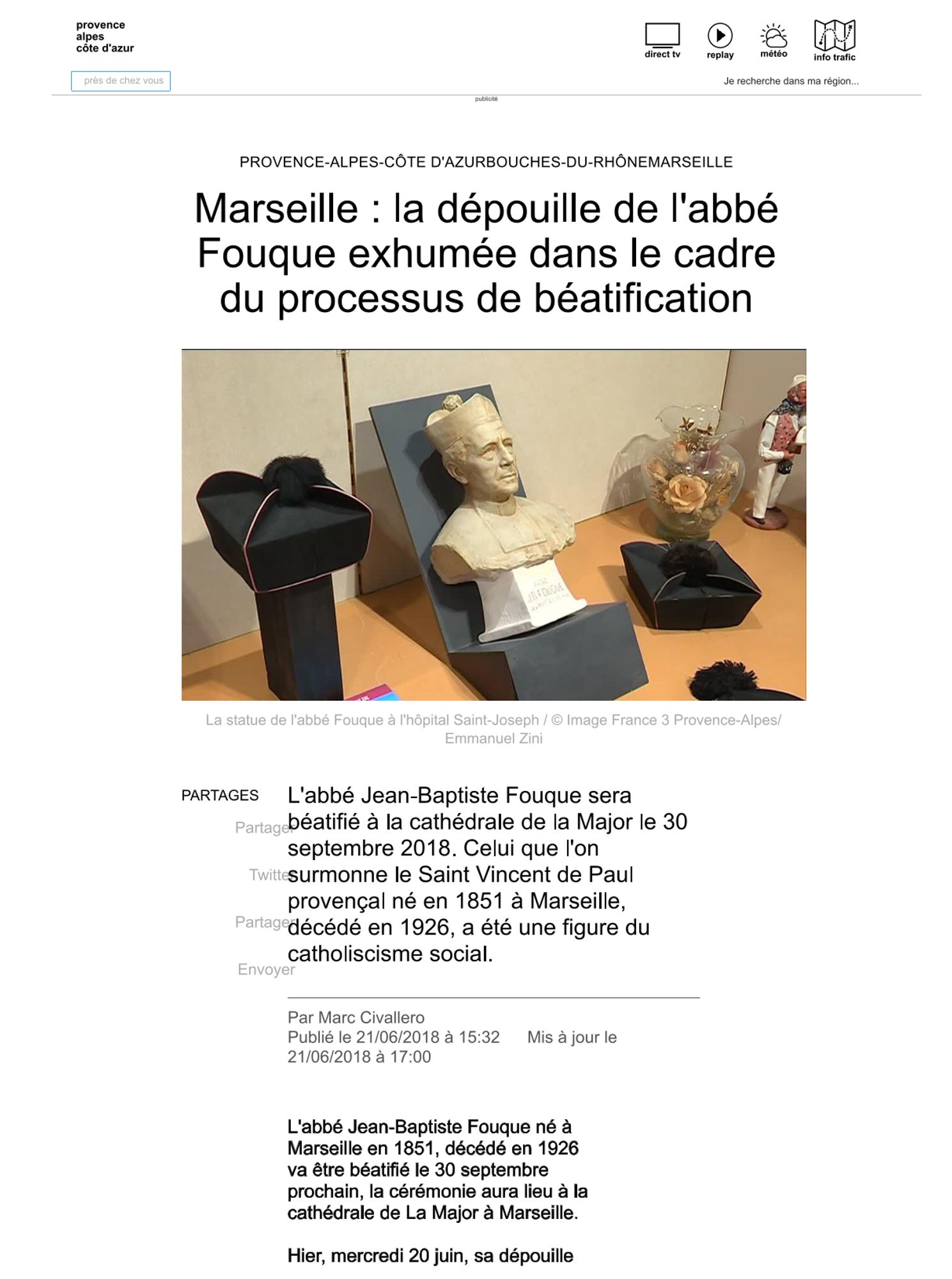 France 3 Région 21/06/2018 : Marseille : la dépouille de l'abbé Fouque exhumée dans le cadre du processus de béatification France 3 Région 21/06/2018 : Marseille : la dépouille de l'abbé Fouque exhumée dans le cadre du processus de béatification (335.0 Ko)