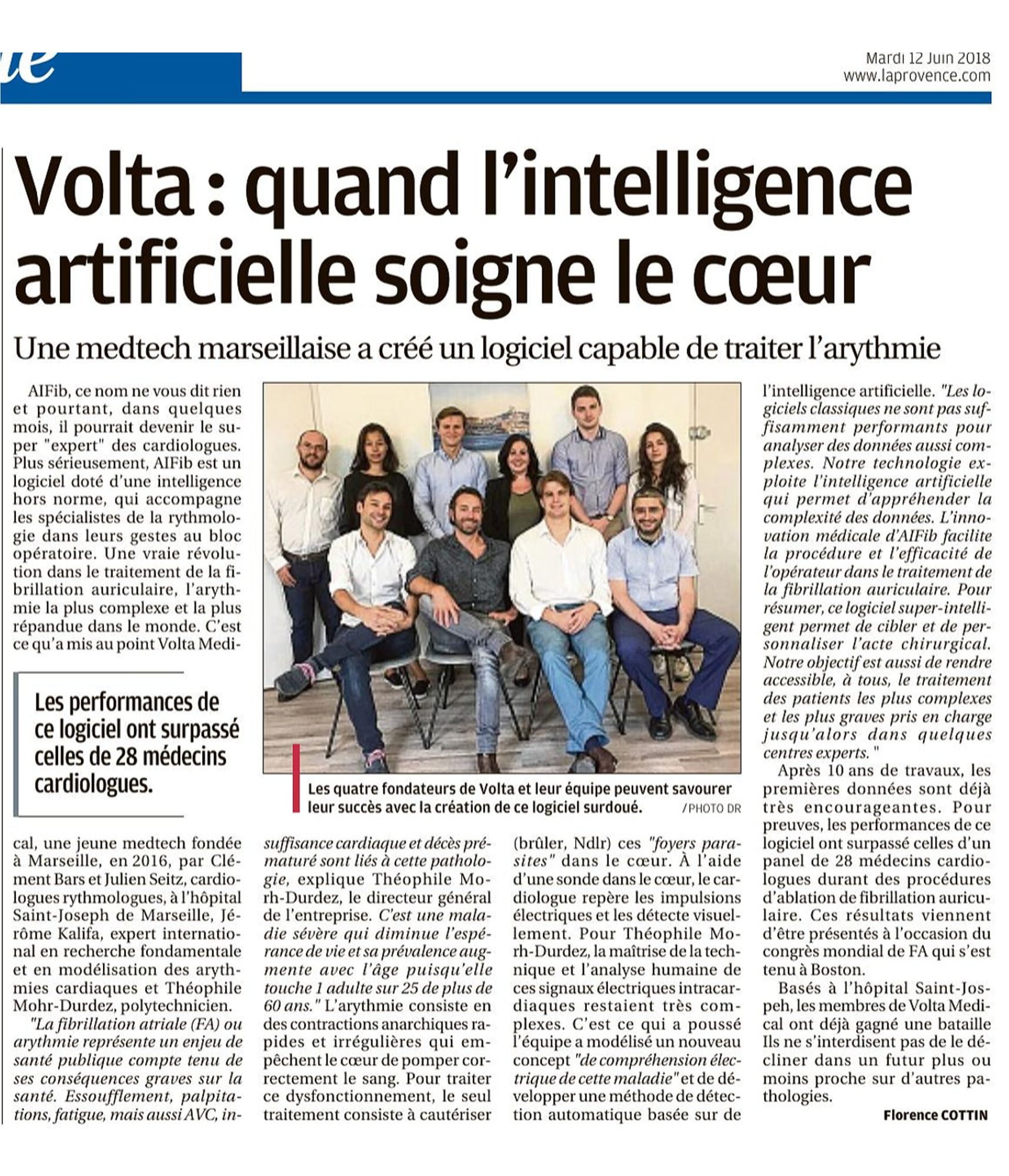 La Provence, 12/06/2018 :" Volta : quand l'intelligence artificielle soigne le coeur" La Provence 12/06/2018 : Volta : quand l'intelligence artificielle soigne le coeur (823.7 Ko)