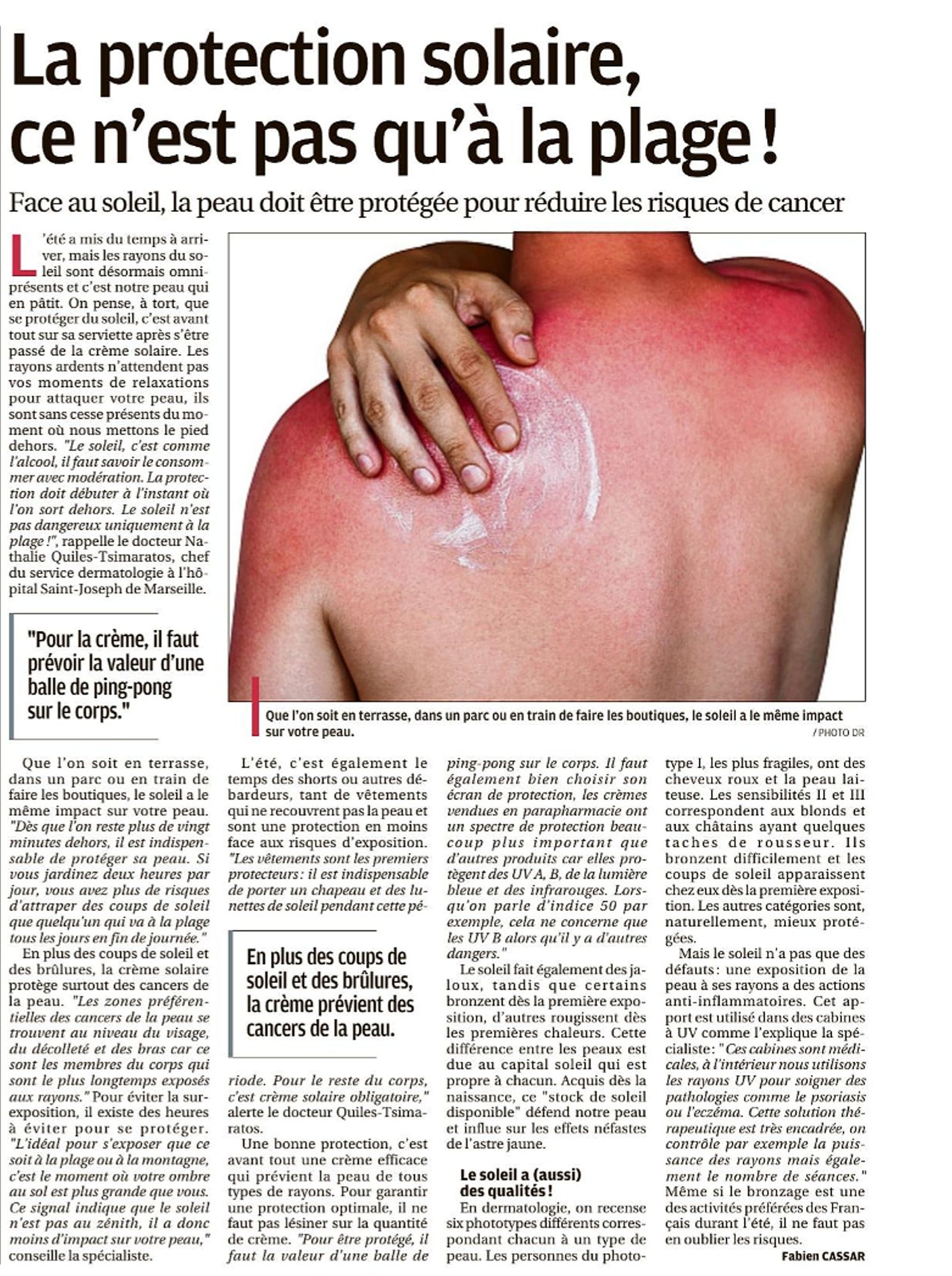 La Provence, 25/06/2018 : La protection solaire, ce n'est pas qu'à la plage! La Provence 25/06/2018 : La protection solaire, ce n'est pas qu'à la plage! (2.6 Mo)