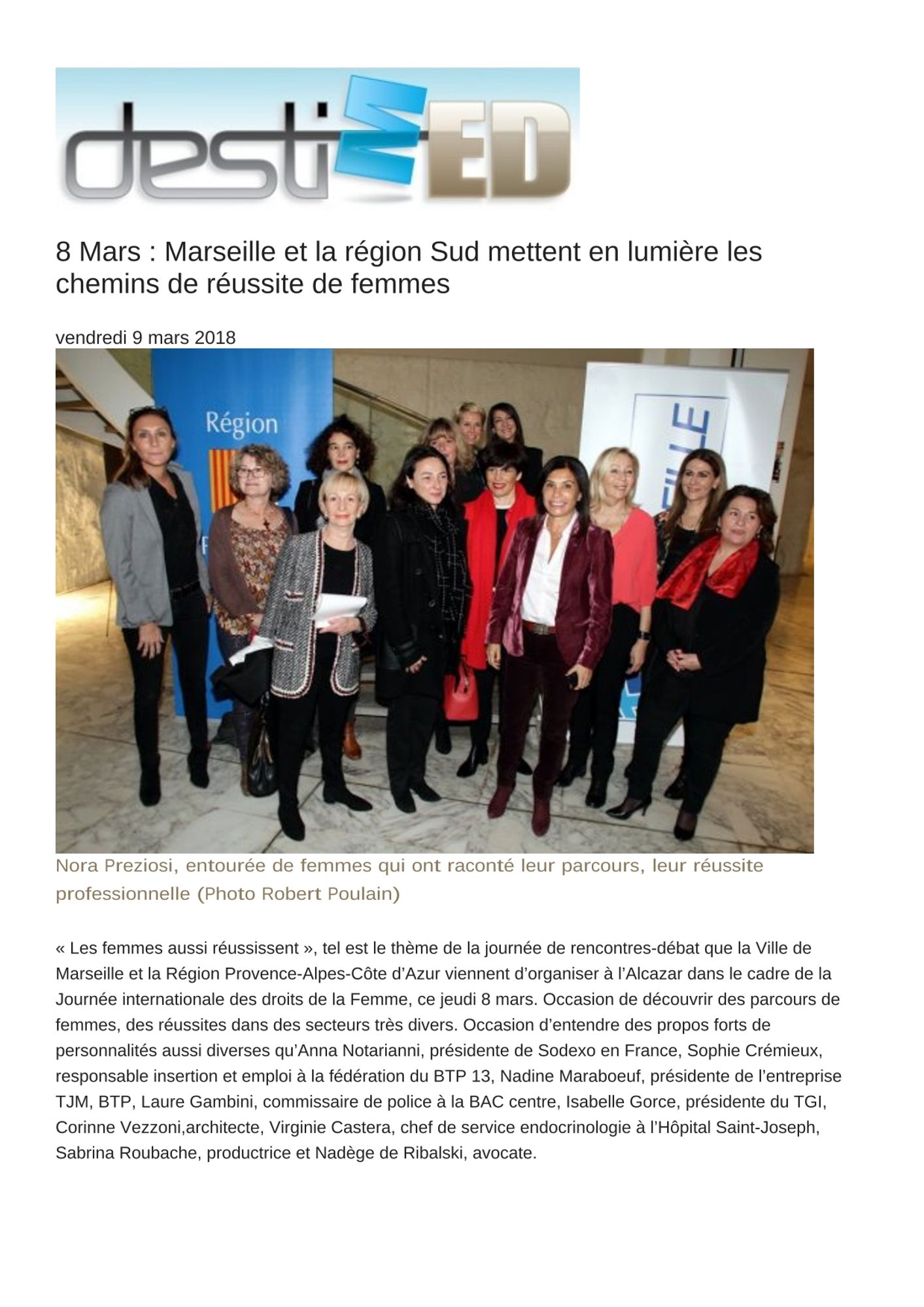 DestiMed, 09/03/2018 : Marseille et la région Sud mettent en lumière les chemins de réussite de femmes Marseille et la région Sud mettent en lumière les chemins de réussite de femmes (130.7 Ko)