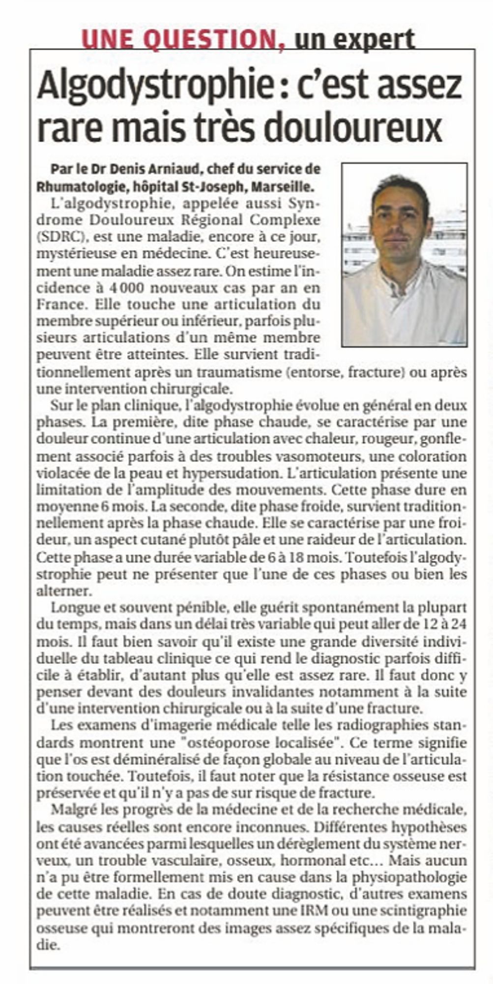 La Provence, 26/11/2018 " Algodystrophie : c'est assez rare mais très douloureux " La Provence, 26/11/2018 "Algodystrophie : c'est assez rare mais très douloureux » (1.2 Mo)