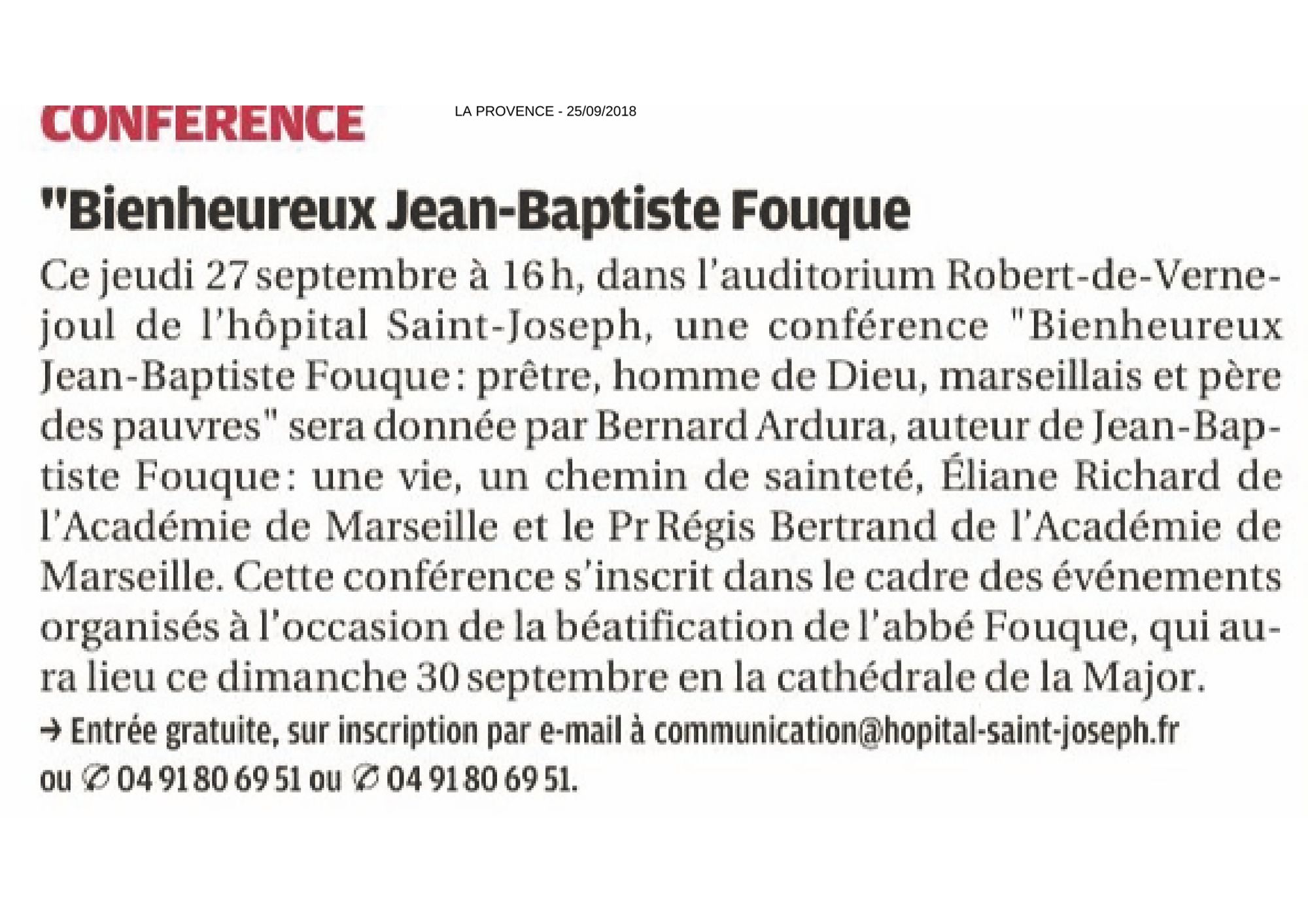 La Provence, 25/09/2018 : " Bienheureux Jean-Baptiste Fouque " CONFERENCE La Provence, 25/09/2018 : « Bienheureux Jean-Baptiste Fouque » CONFERENCE (143.0 Ko)